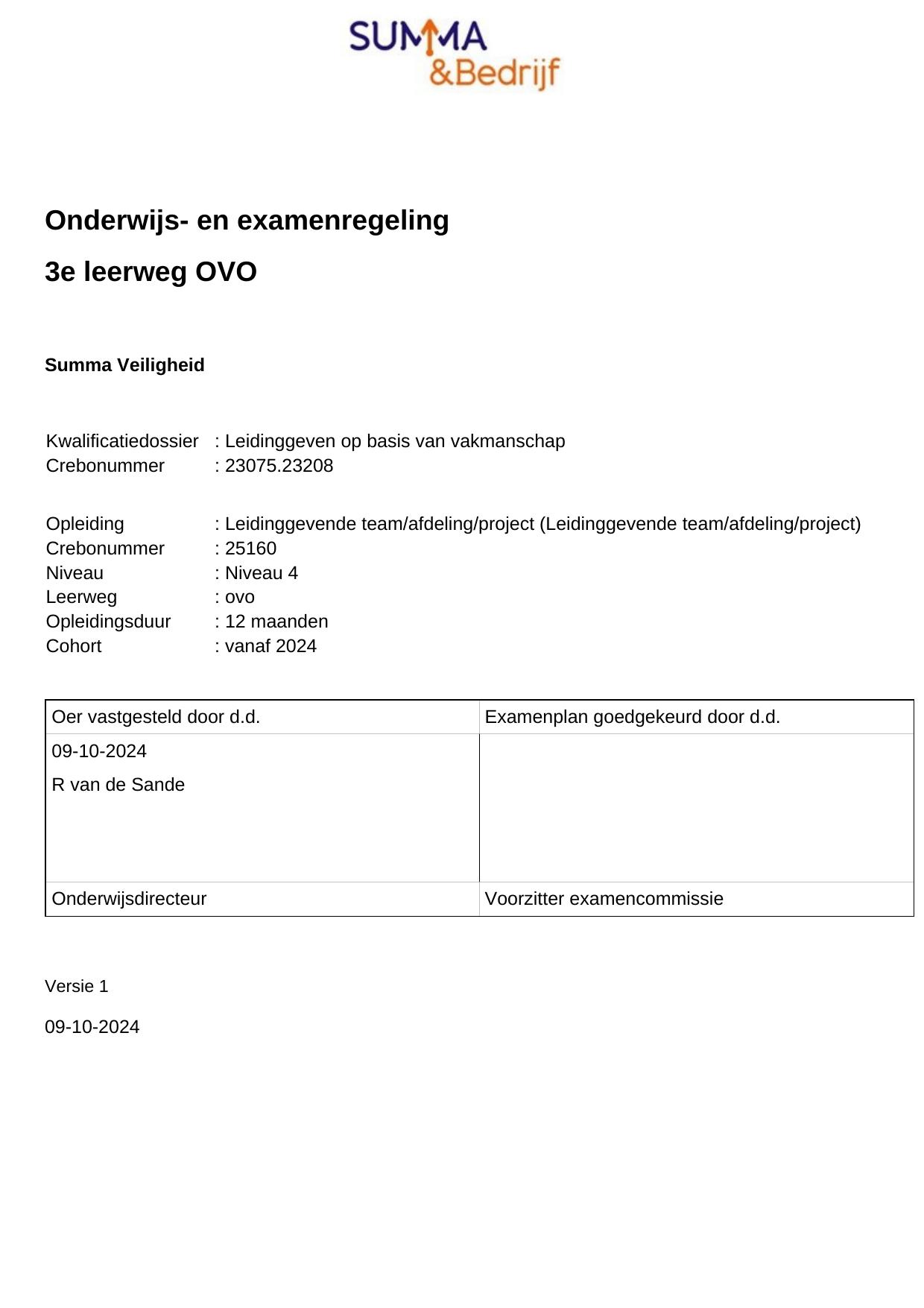 Leidinggevende team/afdeling/project 25160OVO12.02 in cohort 2024-2025