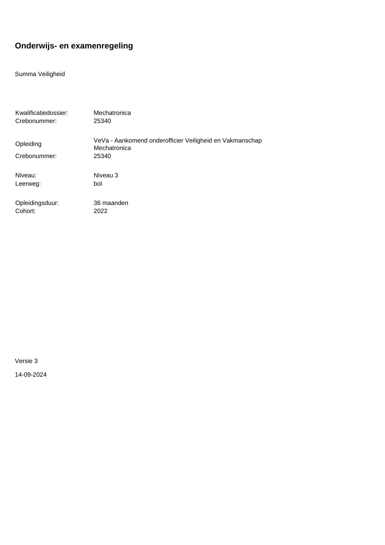 VeVa - Aankomend onderofficier Veiligheid en Vakmanschap Mechatronica 25340BOL36.01 in cohort 2022-2023