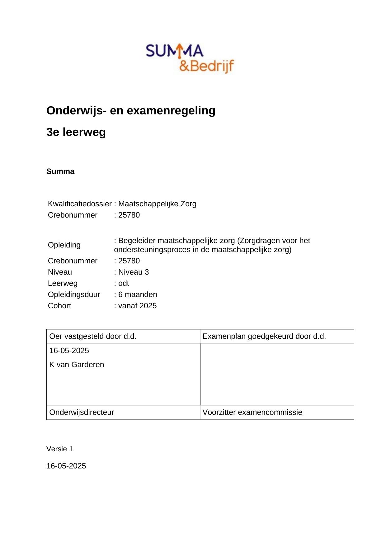 Zorgdragen voor het ondersteuningsproces in de maatschappelijke zorg 25780ODT06.06 in cohort 2025-2026
