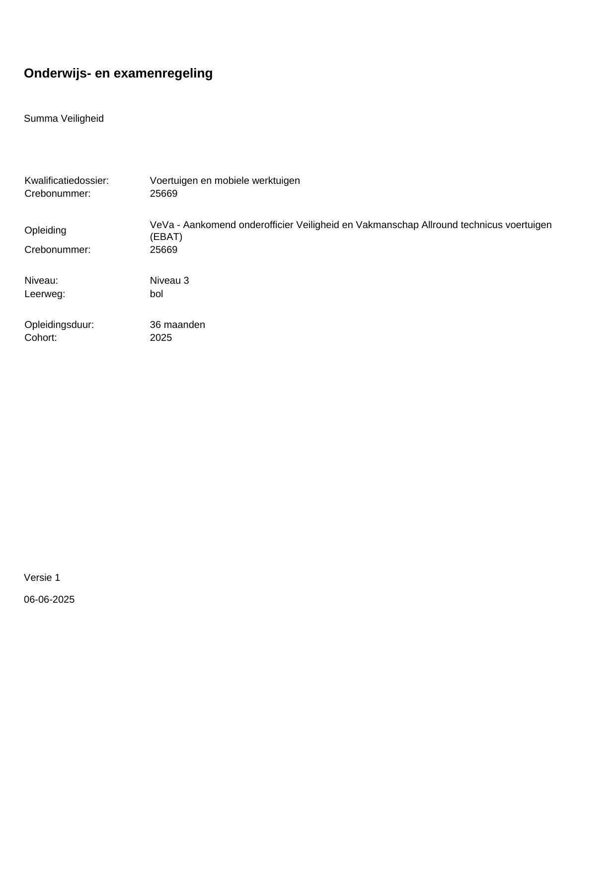VeVa - Aankomend onderofficier Veiligheid en Vakmanschap Allround technicus voertuigen (bedrijfsauto's)) 25669BOL36.01 in cohort 2025-2026