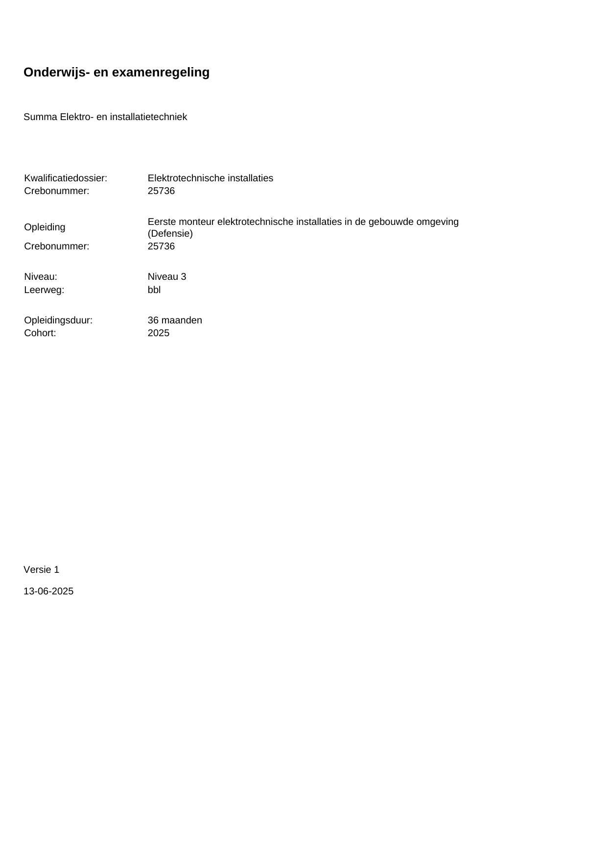 Eerste monteur elektrotechnische installaties in de gebouwde omgeving (Defensie) 25736BBL36.02 in cohort 2025-2026
