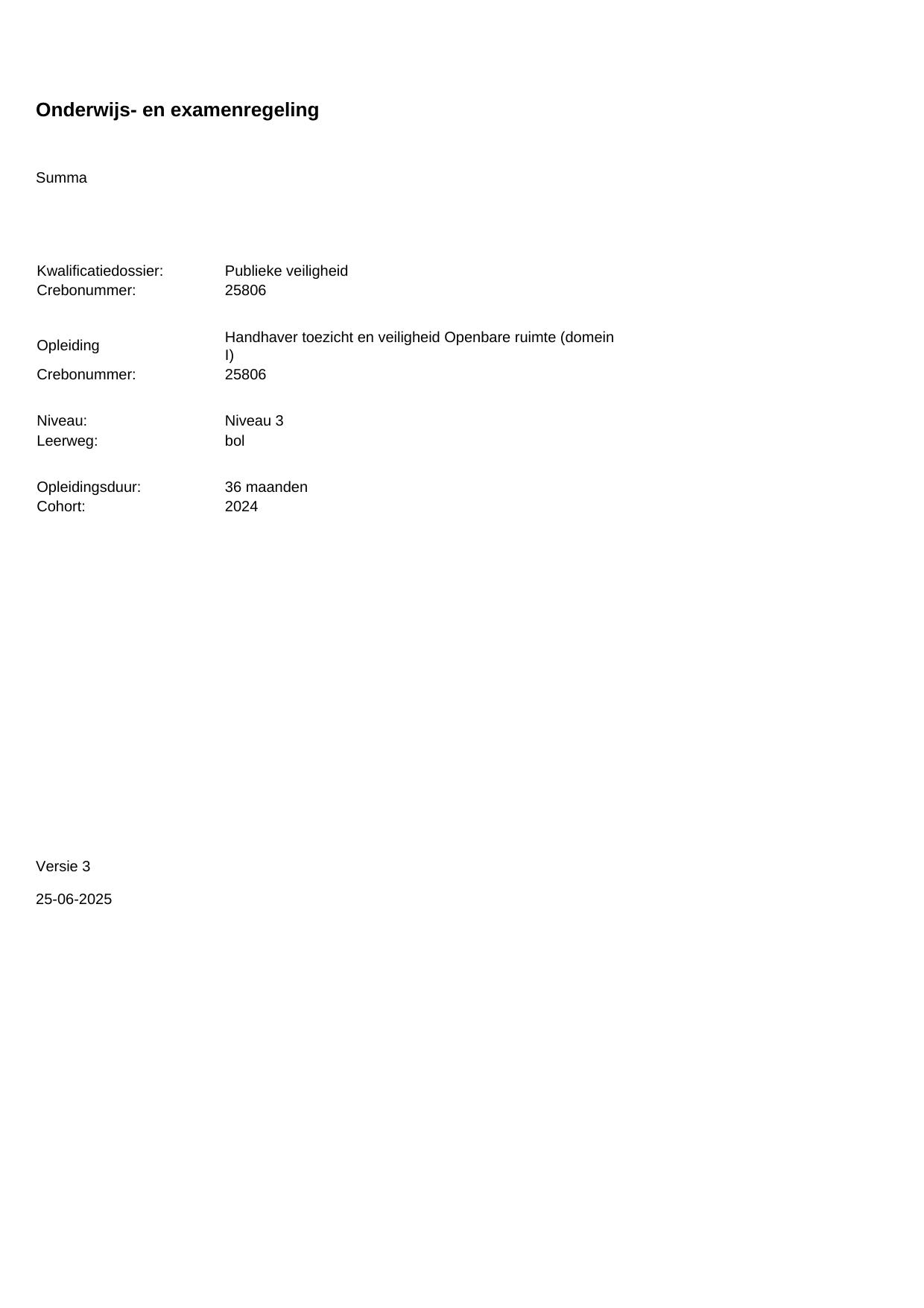Handhaver toezicht en veiligheid Openbare ruimte (domein I) 25806BOL36.01 in cohort 2024-2025