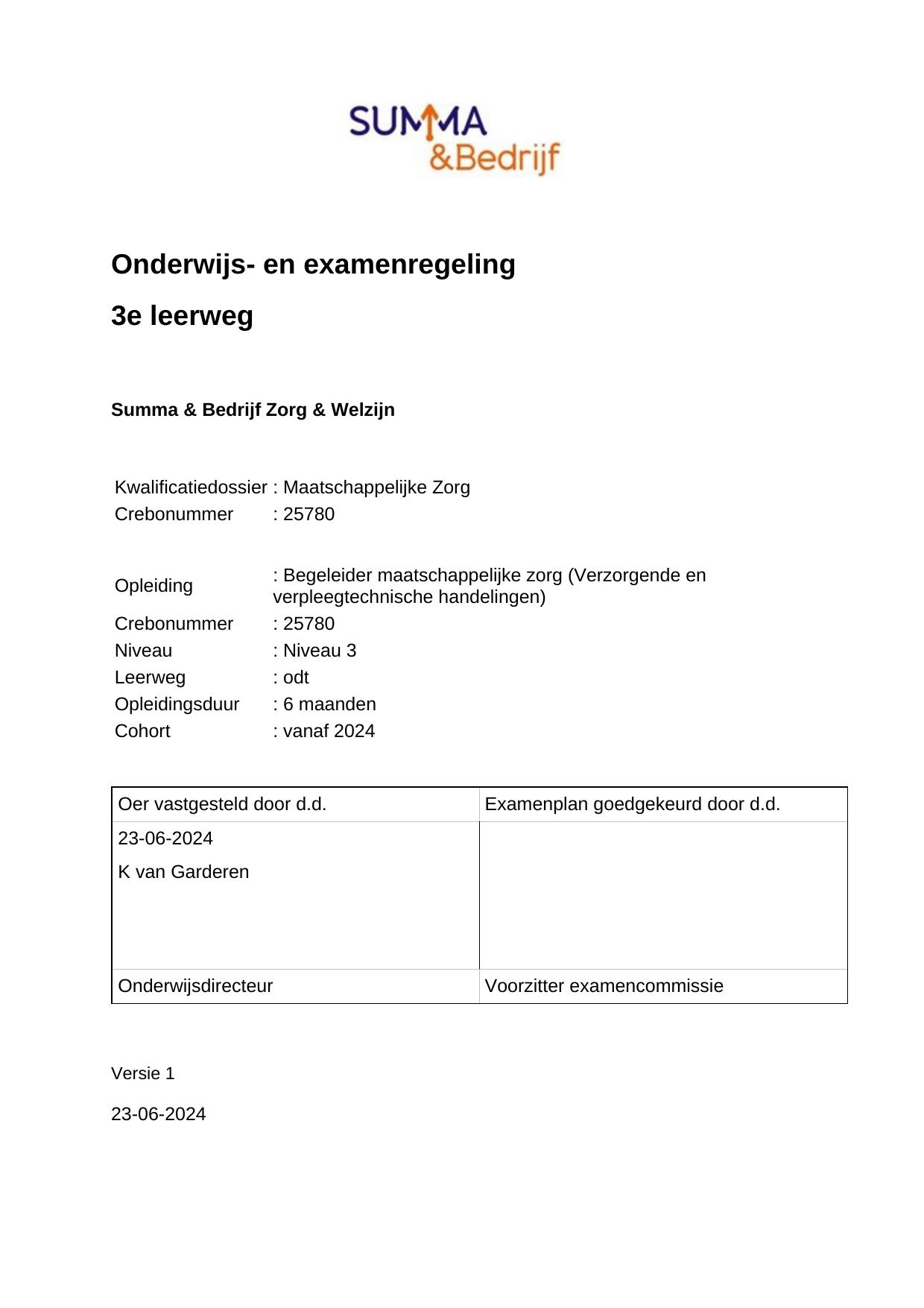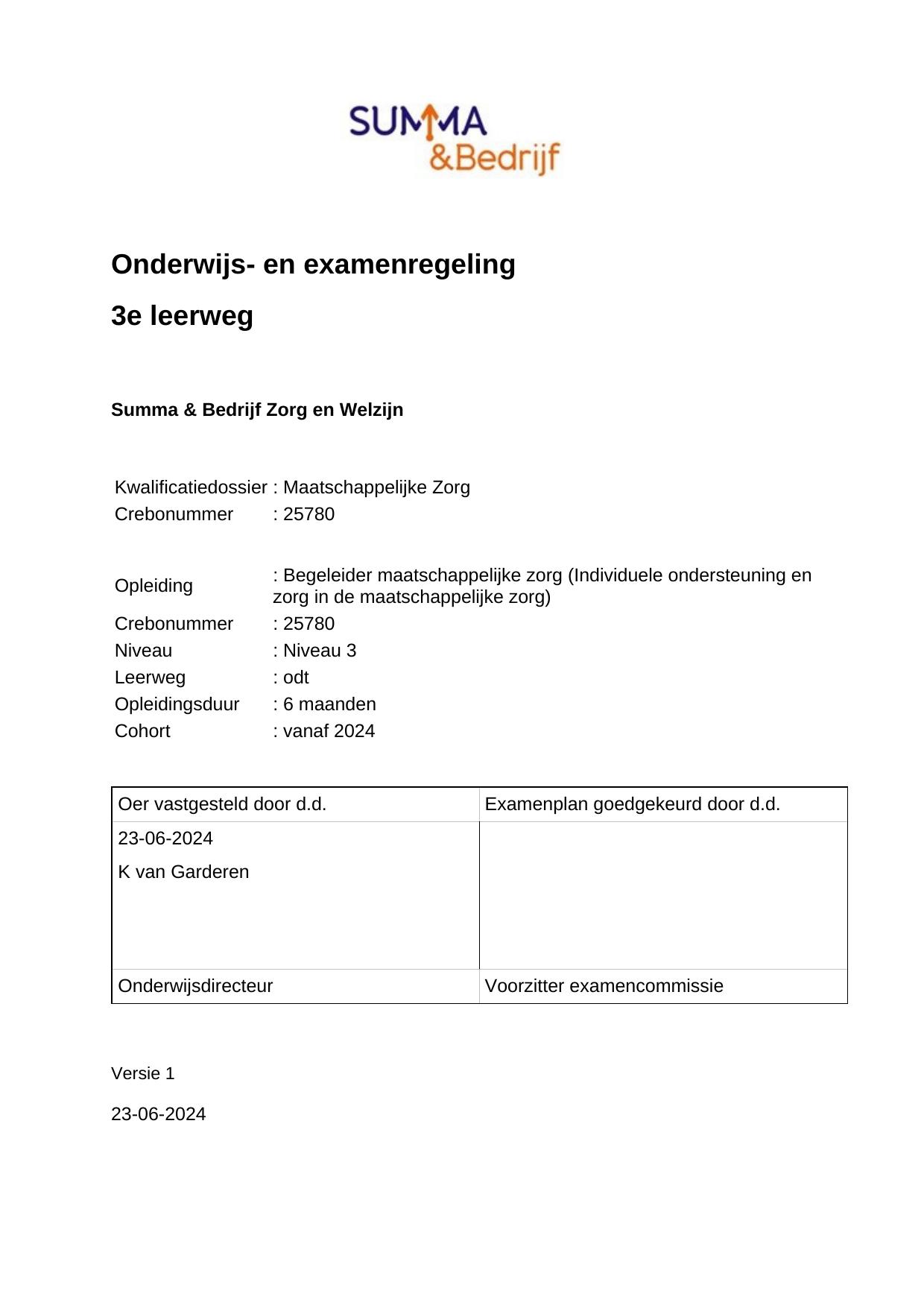 Zorgdragen voor het ondersteuningsproces in de maatschappelijke zorg 25780ODT06.06 in cohort 2024-2025