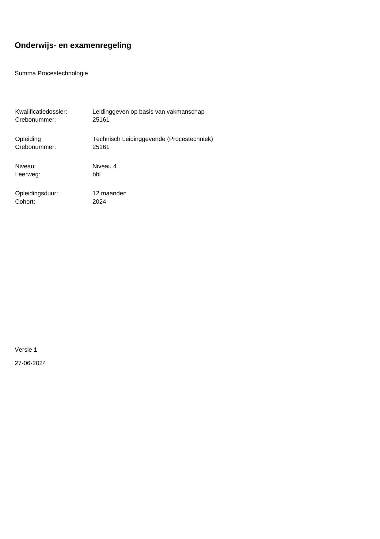 Technisch Leidinggevende (Procestechniek) 25161BBL12.04 in cohort 2024-2025