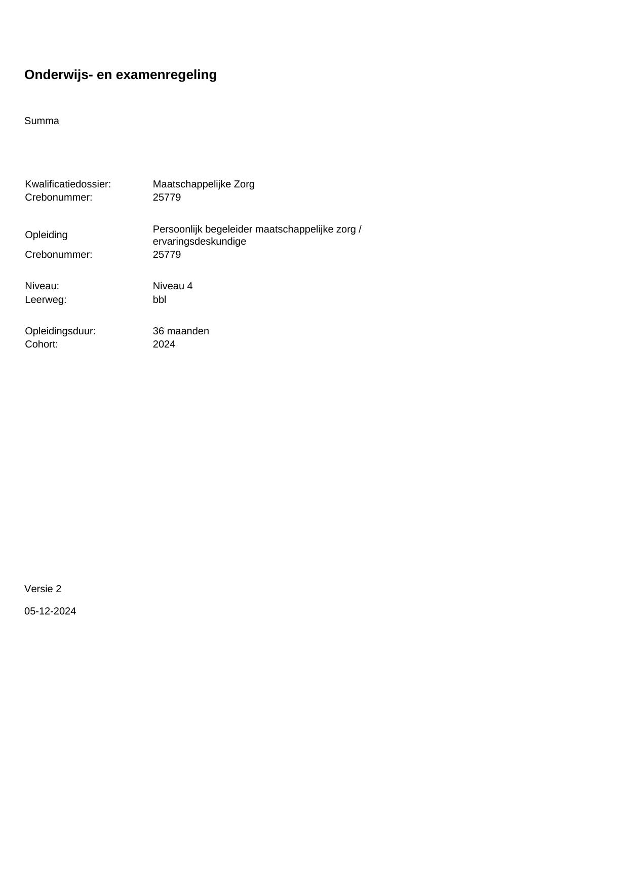 Persoonlijk begeleider maatschappelijke zorg 25779BBL36.01 in cohort 2024-2025