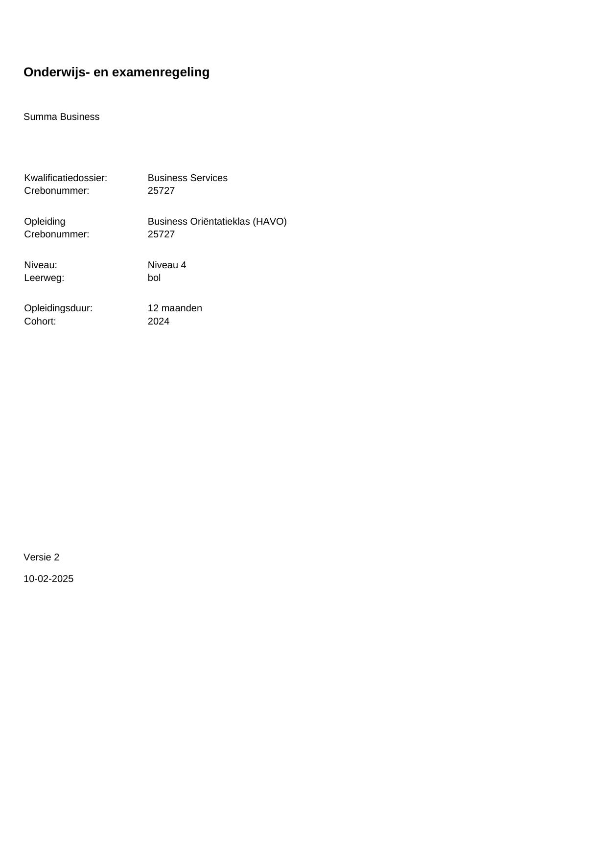 Business Oriëntatieklas (HAVO) 25727BOL12.01 in cohort 2024-2025