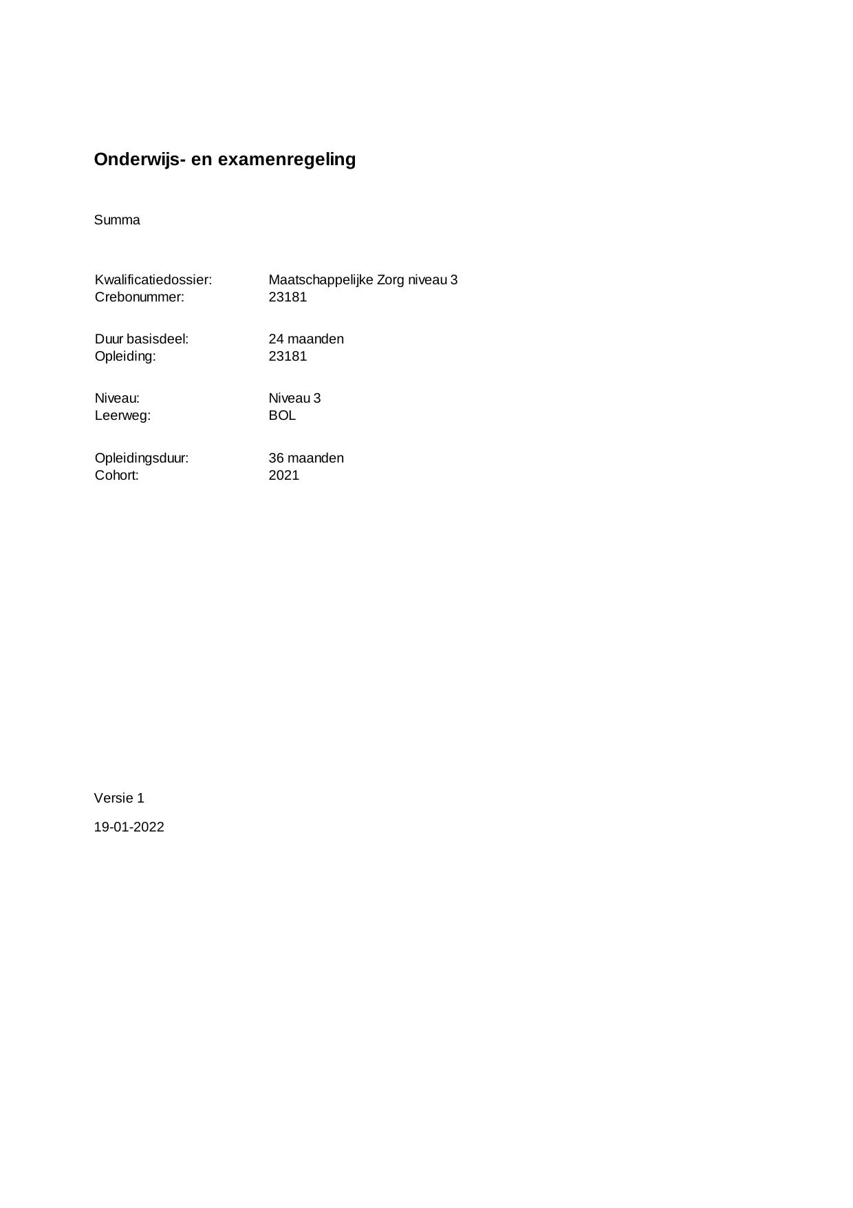 Maatschappelijke Zorg niveau 3 23181BOL36.01 in cohort 2021-2022