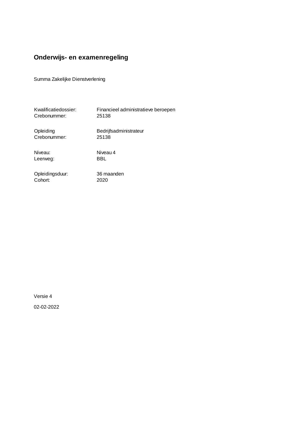 Bedrijfsadministrateur 25138BBL36.01 in cohort 2020-2021