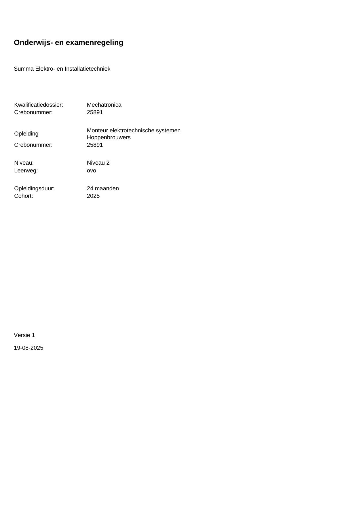 Monteur elektrotechnische systemen Hoppenbrouwers 25891OVO24.01 in cohort 2025-2026