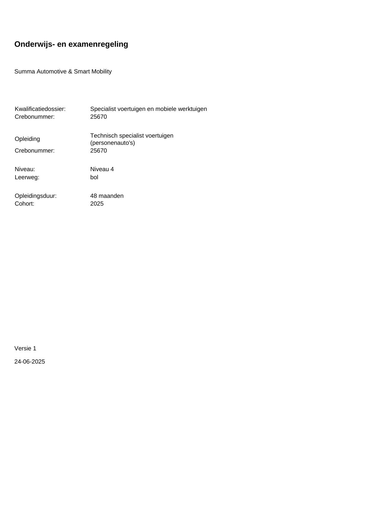 Technisch Specialist Personenauto 25670BOL48.01 in cohort 2025-2026