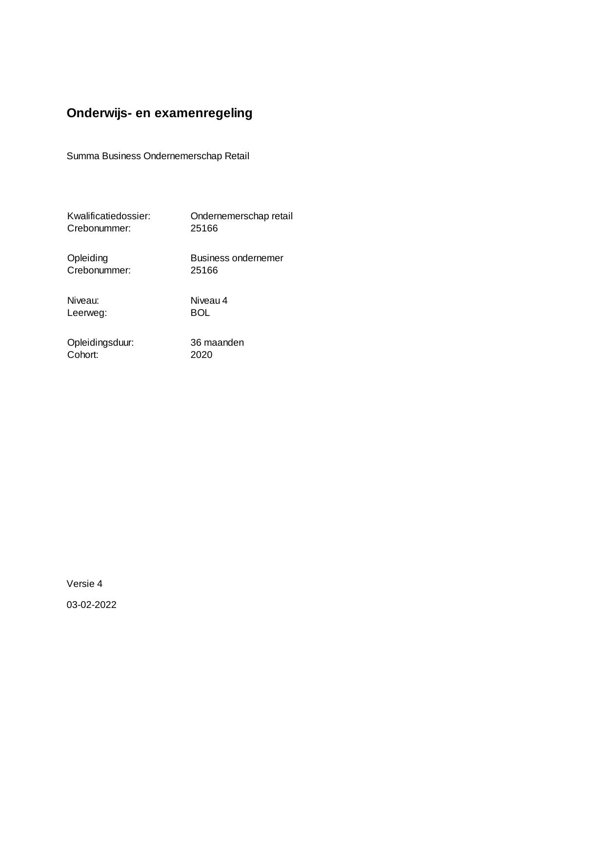 Business ondernemer 25166BOL36.01 in cohort 2020-2021