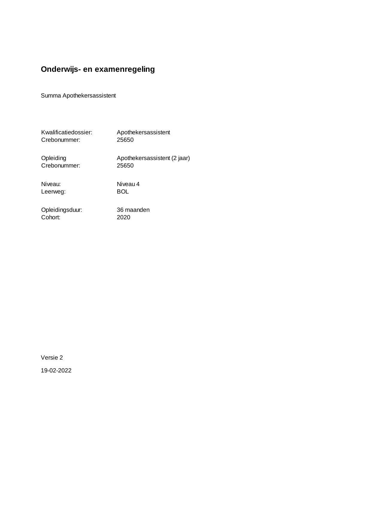 Apothekersassistent 25650BOL36.03 in cohort 2020-2021