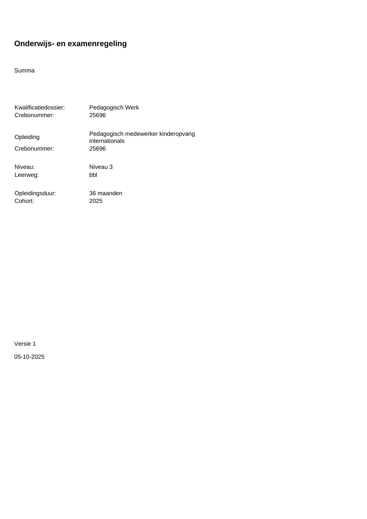 Pedagogisch medewerker kinderopvang internationals 25696BBL36.02 in cohort 2025-2026