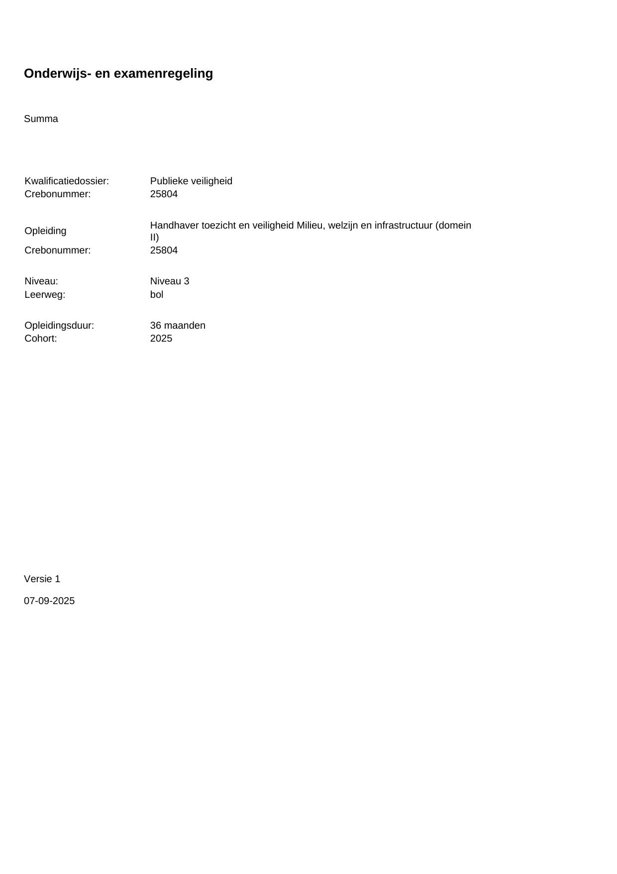 Handhaver toezicht en veiligheid Milieu, welzijn en infrastructuur (domein II) 25804BOL36.01 in cohort 2025-2026