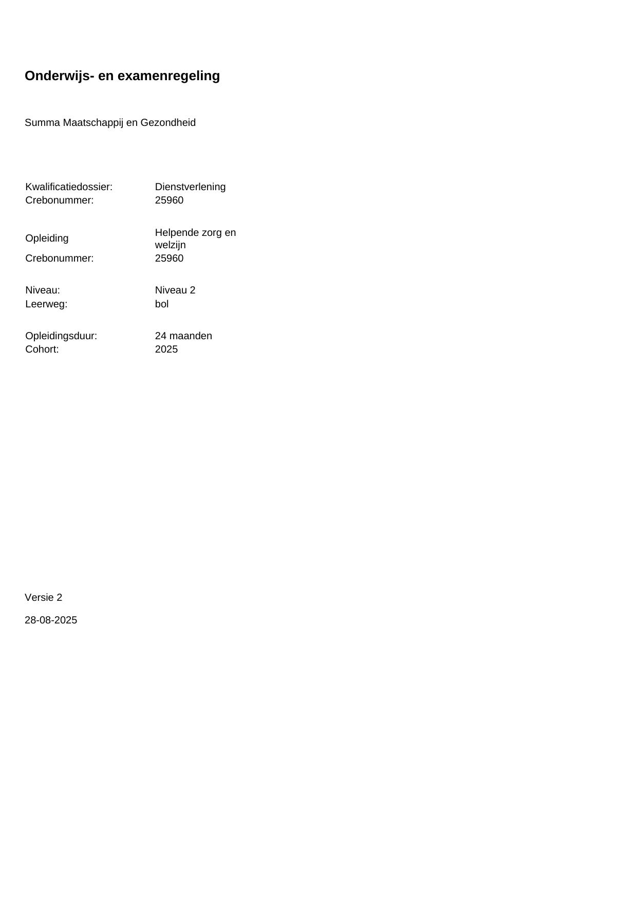 Helpende zorg en welzijn 25960BOL24.01 in cohort 2025-2026