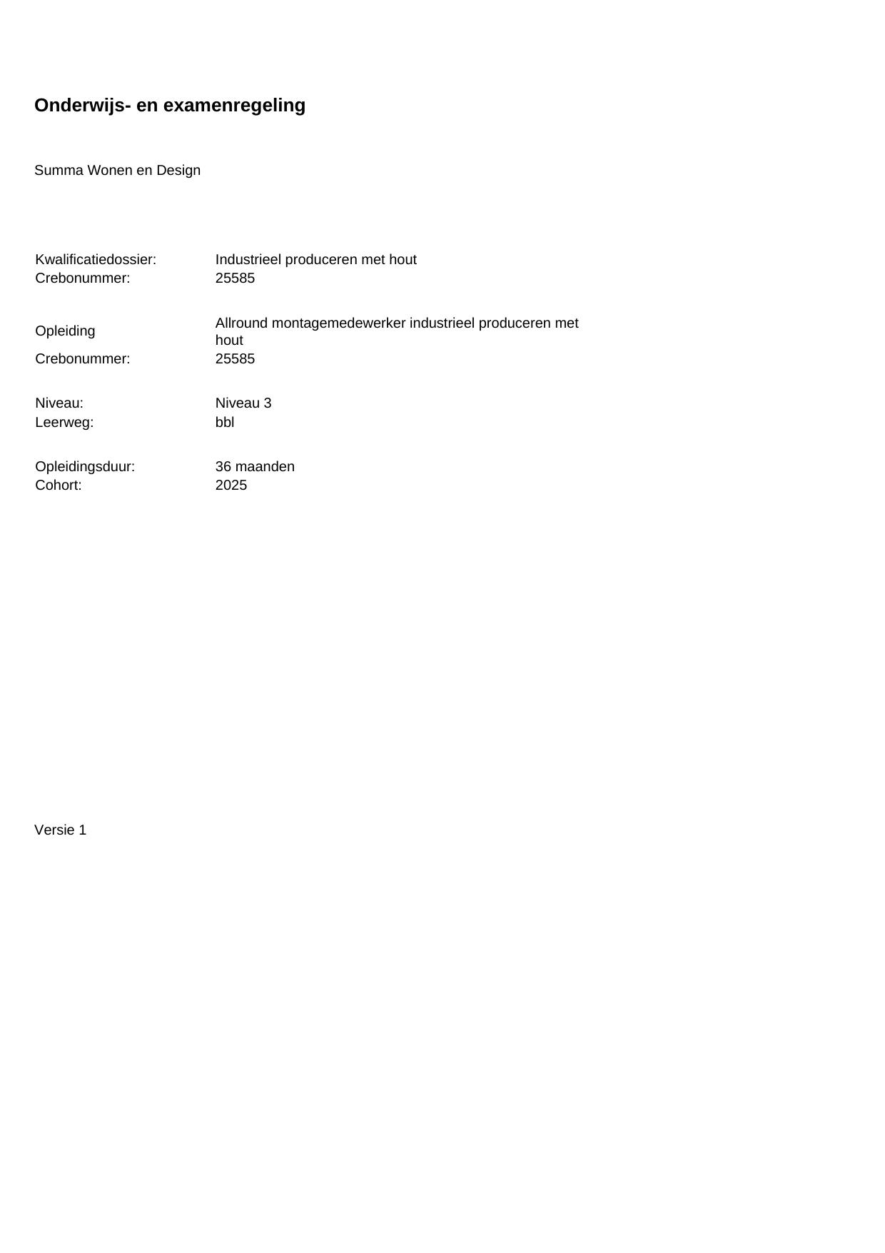 Allround montagemedewerker industrieel produceren met hout 25585BBL36.01 in cohort 2025-2026