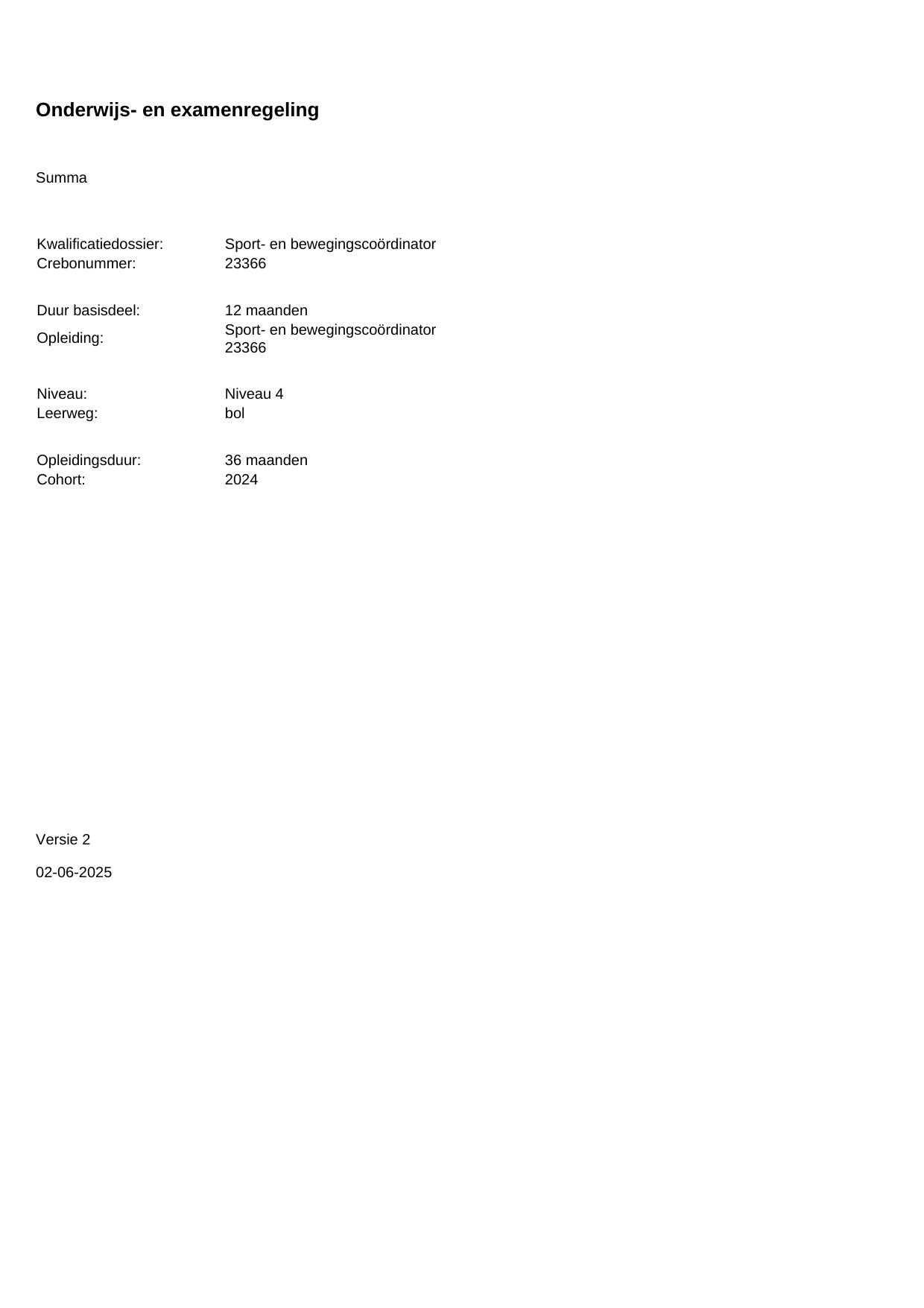 Sport- en bewegingscoördinator 23366BOL36.01 in cohort 2024-2025