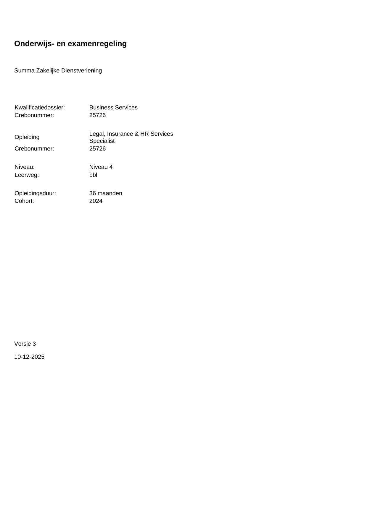 Legal, Insurance & HR Services Specialist 25726BBL36.01 in cohort 2024-2025