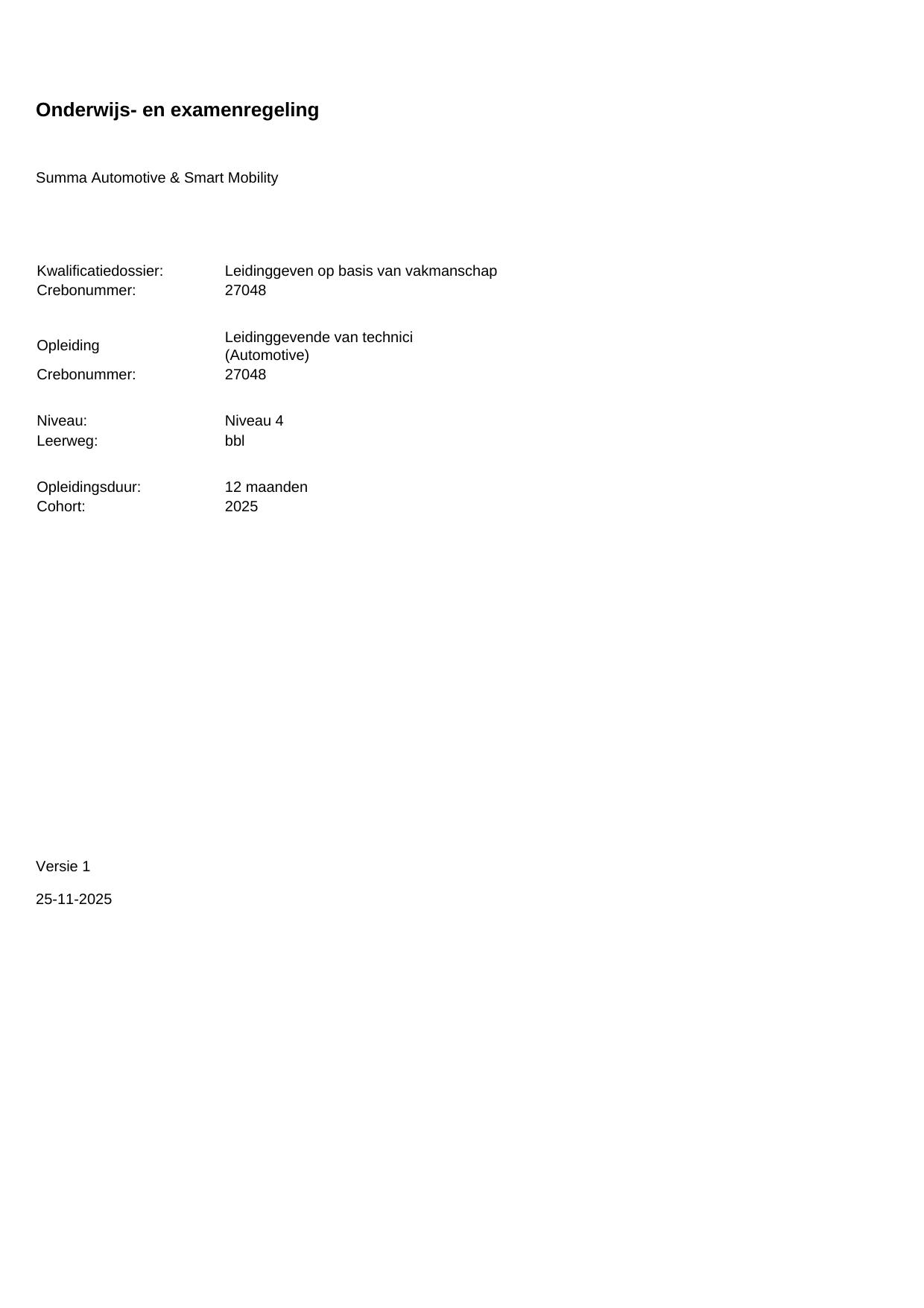 Leidinggevende van technici (Automotive) 27048BBL12.01 in cohort 2025-2026