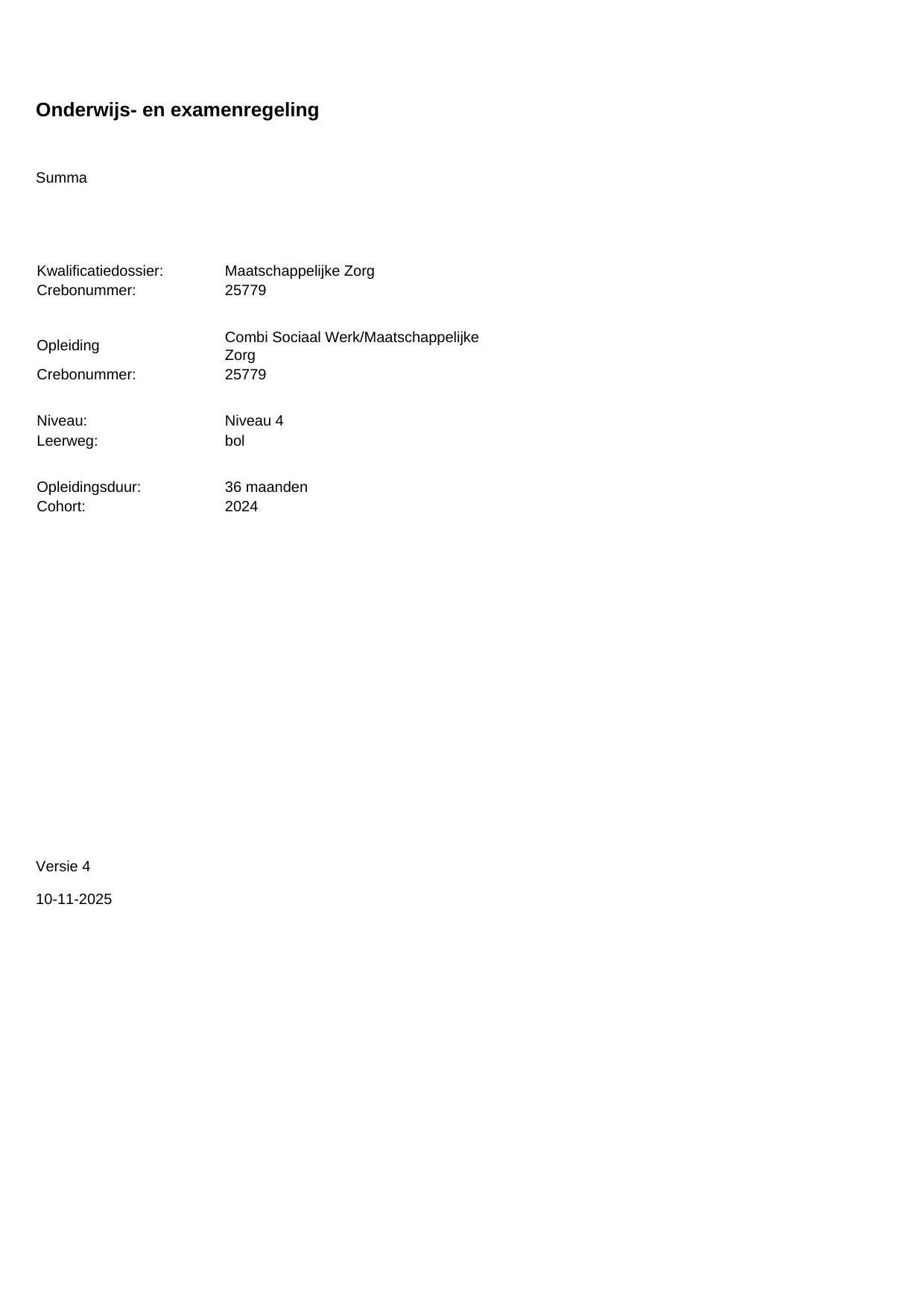 Combi Sociaal Werk/Maatschappelijke Zorg 25779BOL36.02 in cohort 2024-2025
