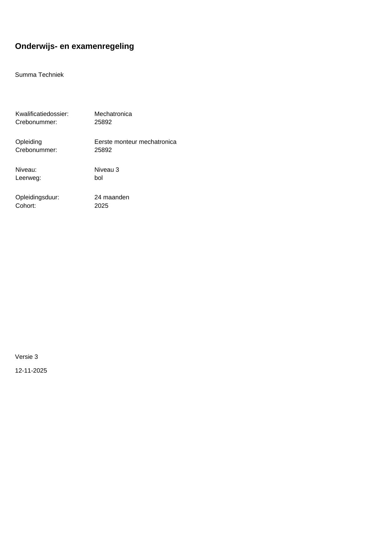 Eerste monteur mechatronica 25892BOL24.01 in cohort 2025-2026
