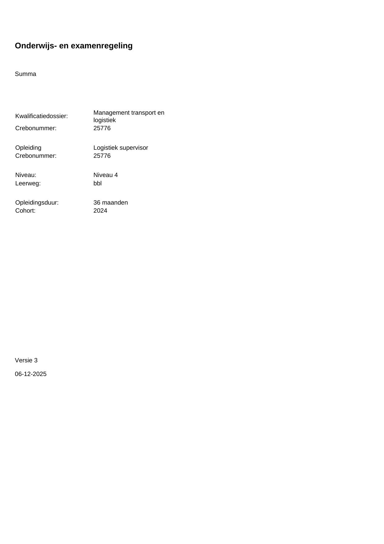 Logistiek supervisor 25776BBL36.01 in cohort 2024-2025