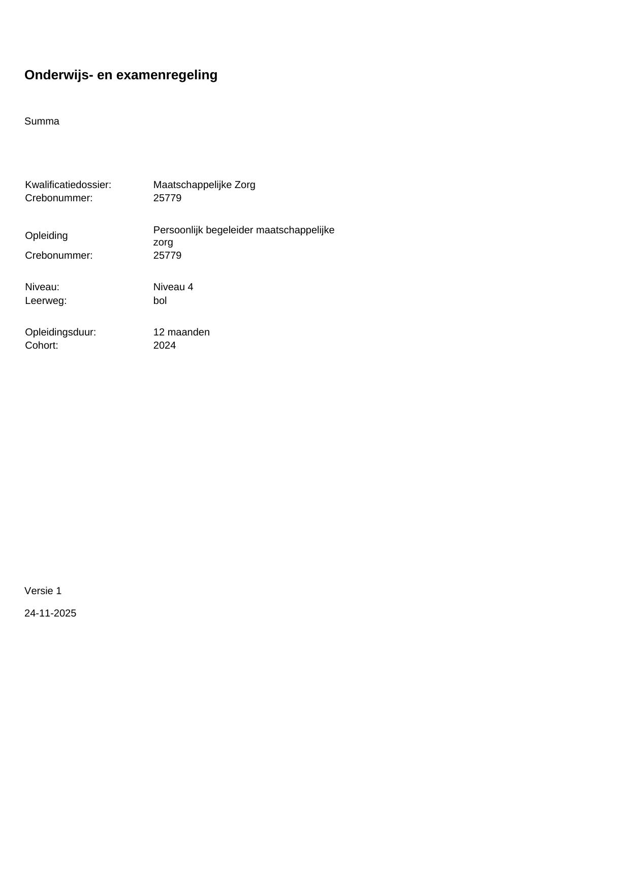 Persoonlijk begeleider maatschappelijke zorg 25779BOL12.99 in cohort 2024-2025