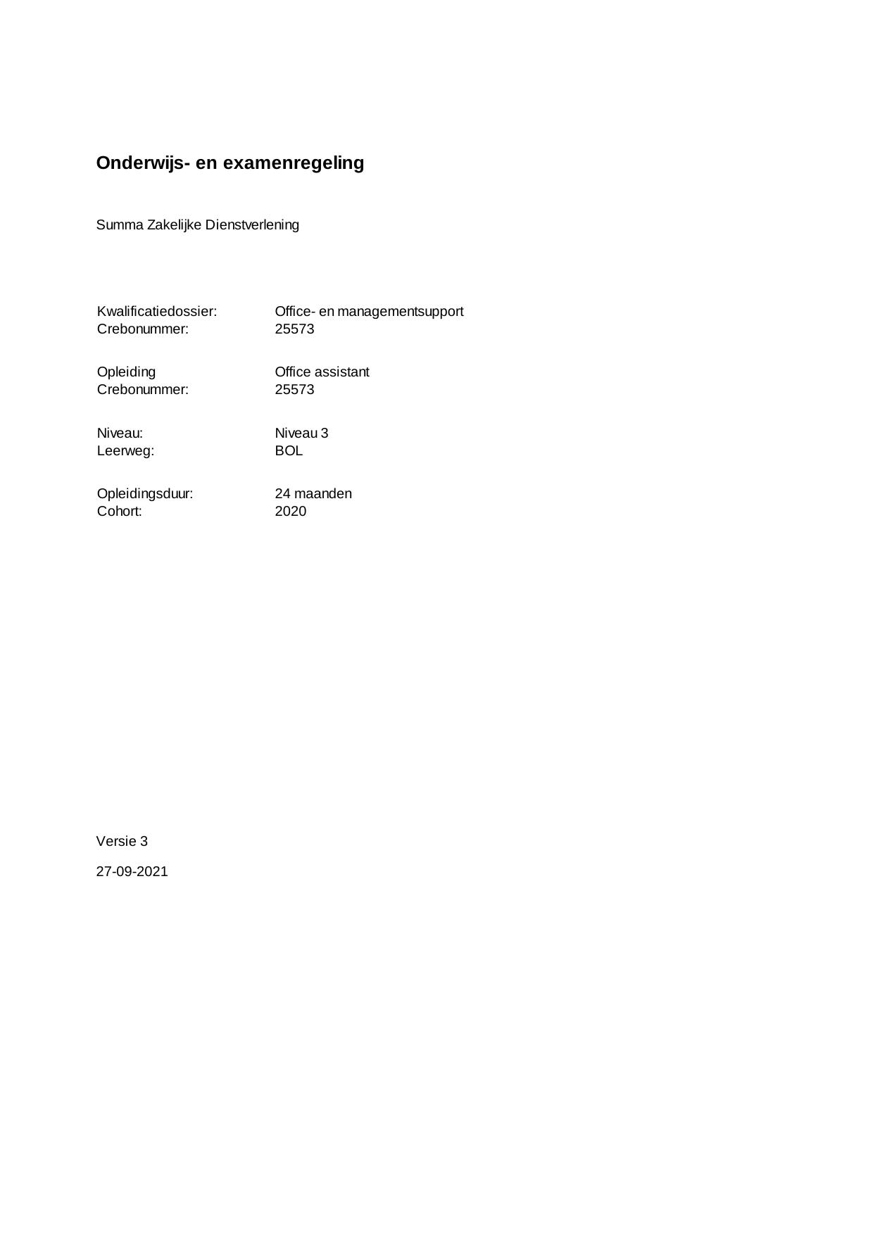 Allround assistant business services 25573BOL24.01 in cohort 2020-2021