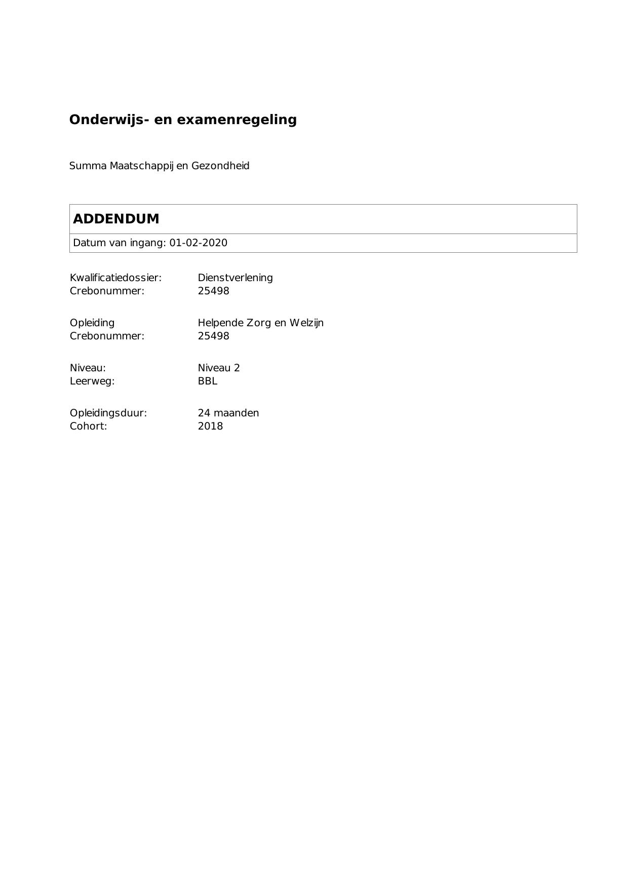Helpende Zorg en Welzijn 25498BBL24.02 in cohort 2018-2019
