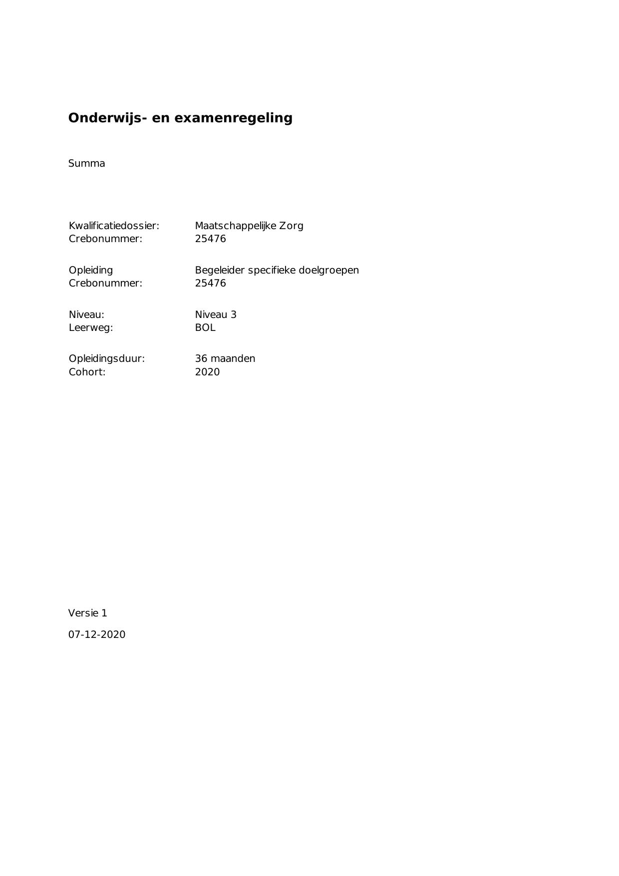 Begeleider specifieke doelgroepen 25476BOL36.02 in cohort 2020-2021