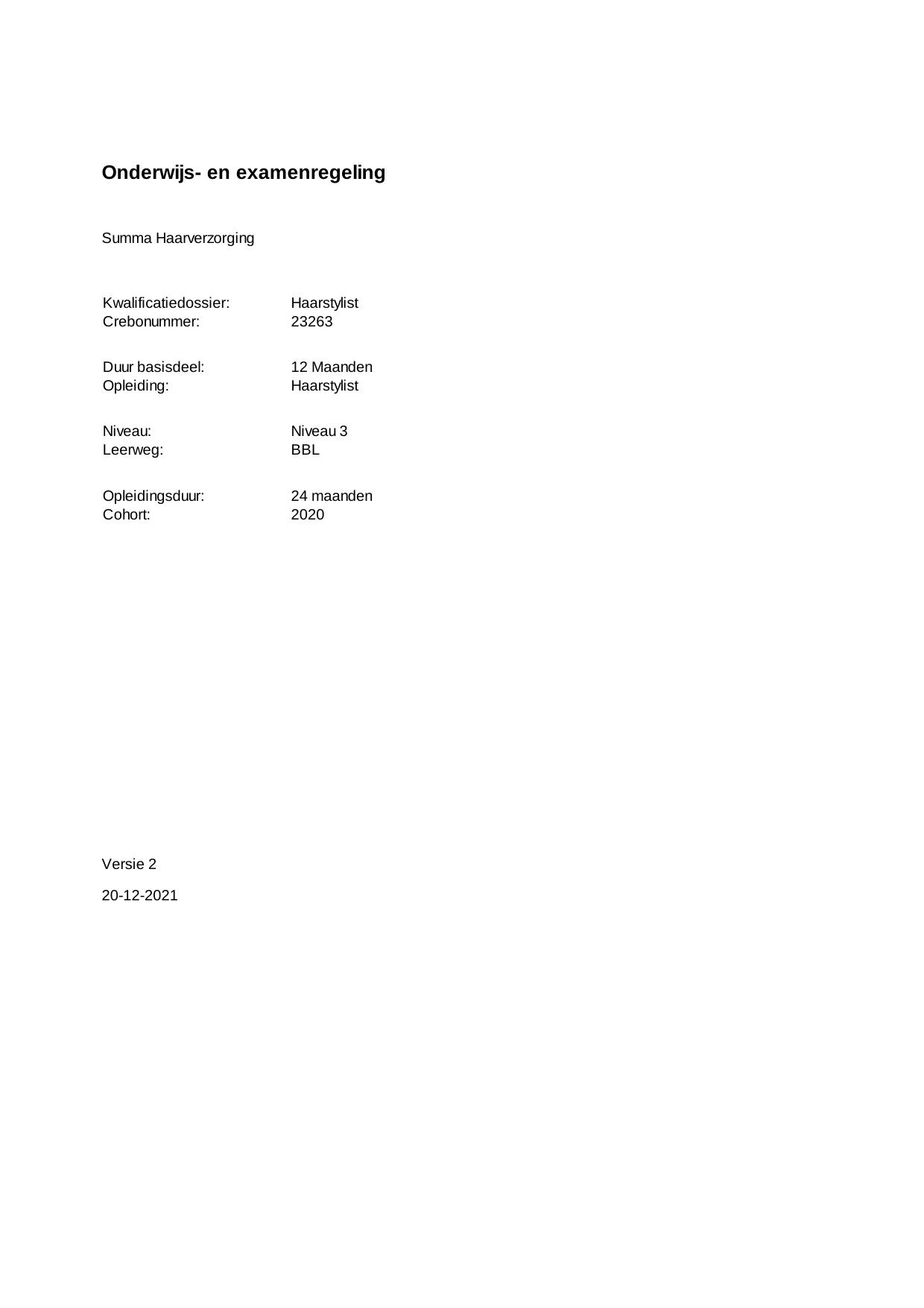 Haarstylist (Kapper) 23263BBL24.01 in cohort 2020-2021
