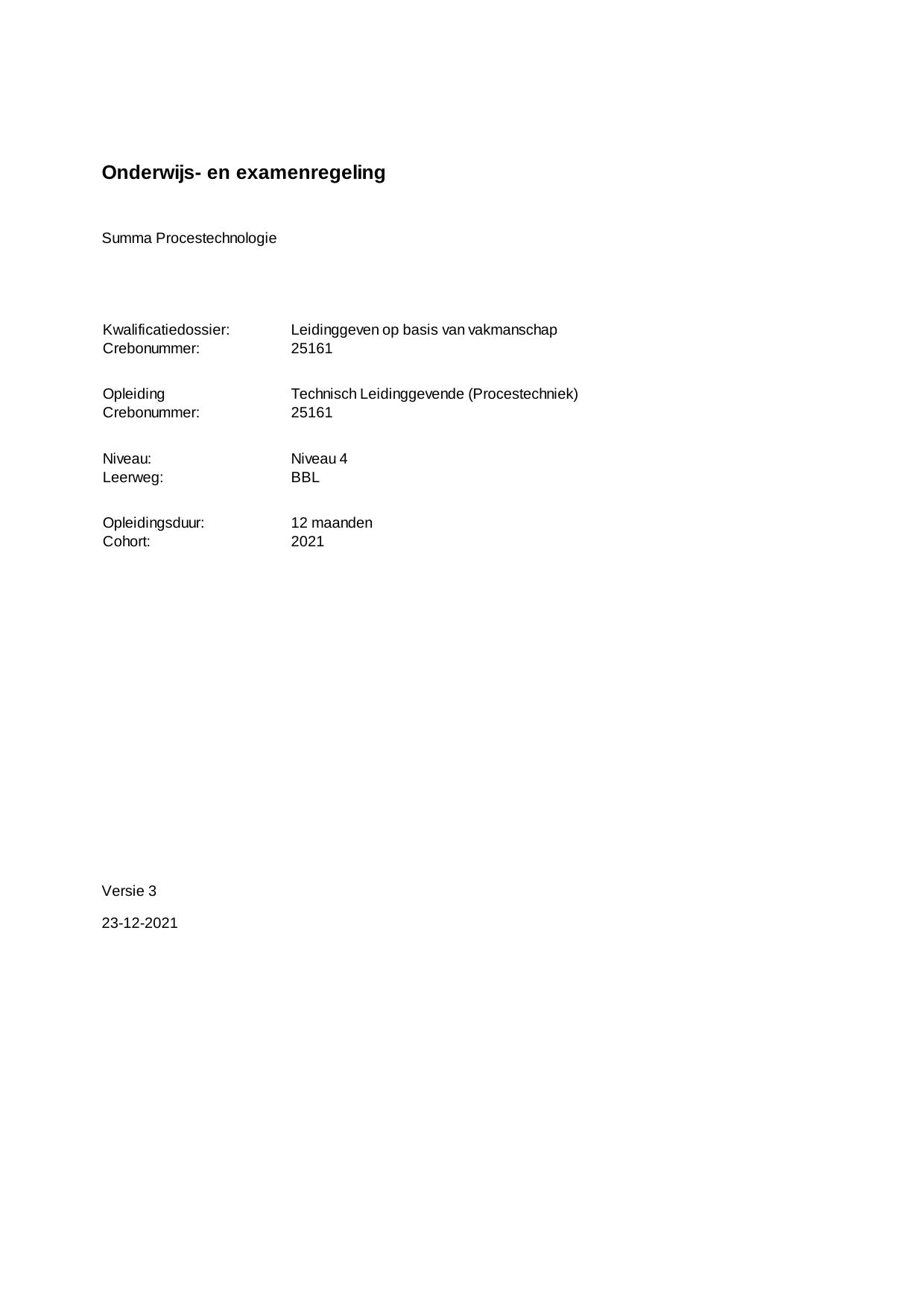 Technisch Leidinggevende (Procestechniek) 25161BBL12.04 in cohort 2021-2022