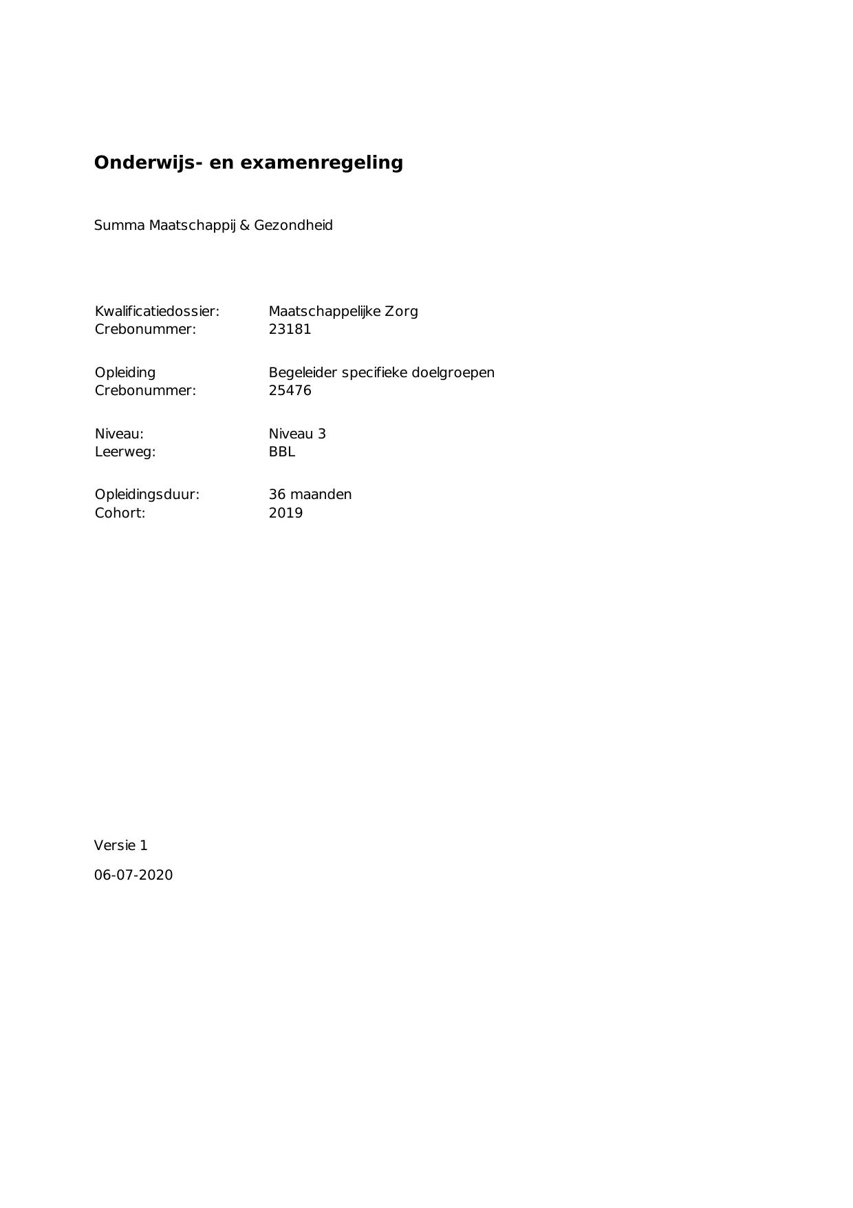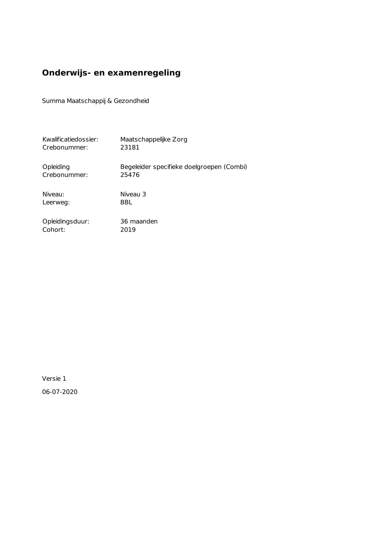 Begeleider specifieke doelgroepen (Combi) 25476BBL36.01 in cohort 2019-2020