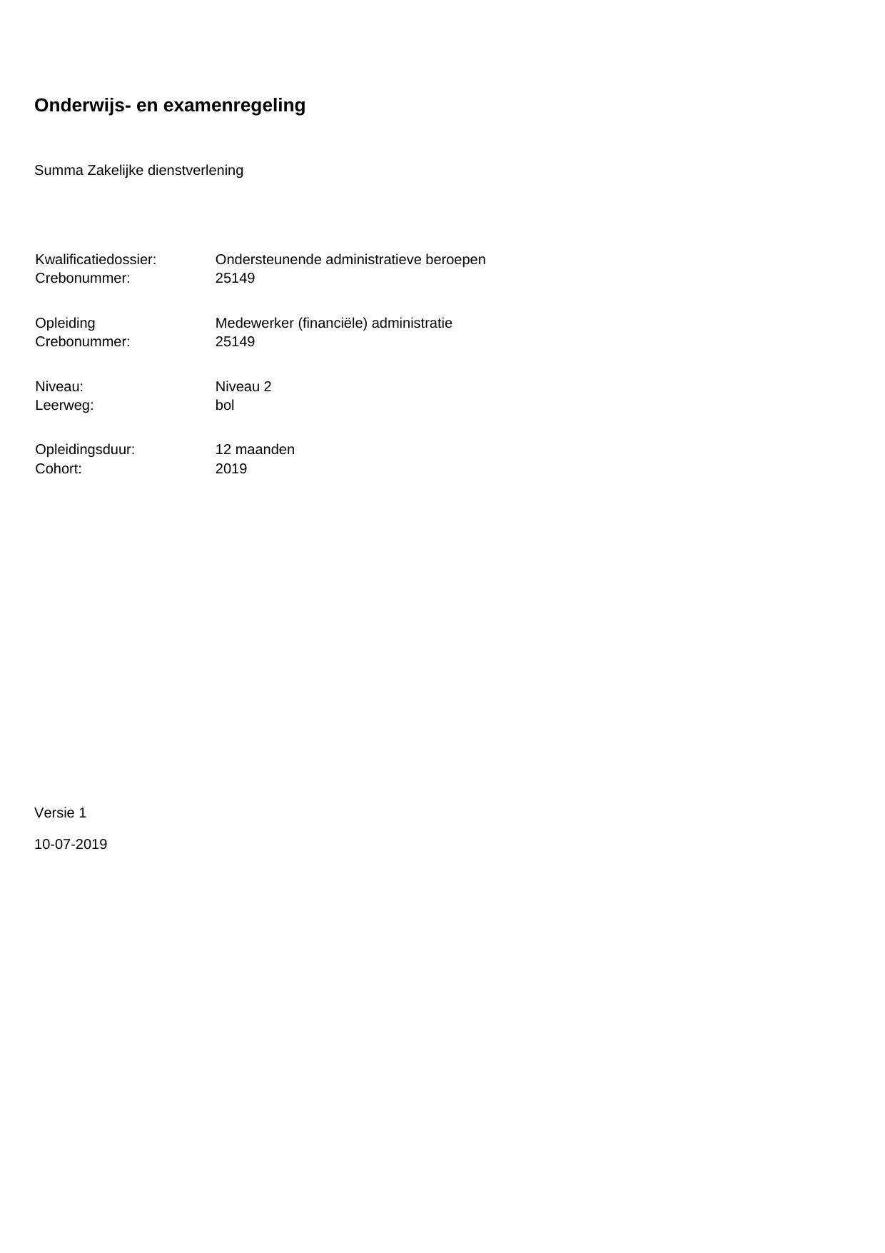 Medewerker (financiële) administratie 25149BOL12.01 in cohort 2019-2020