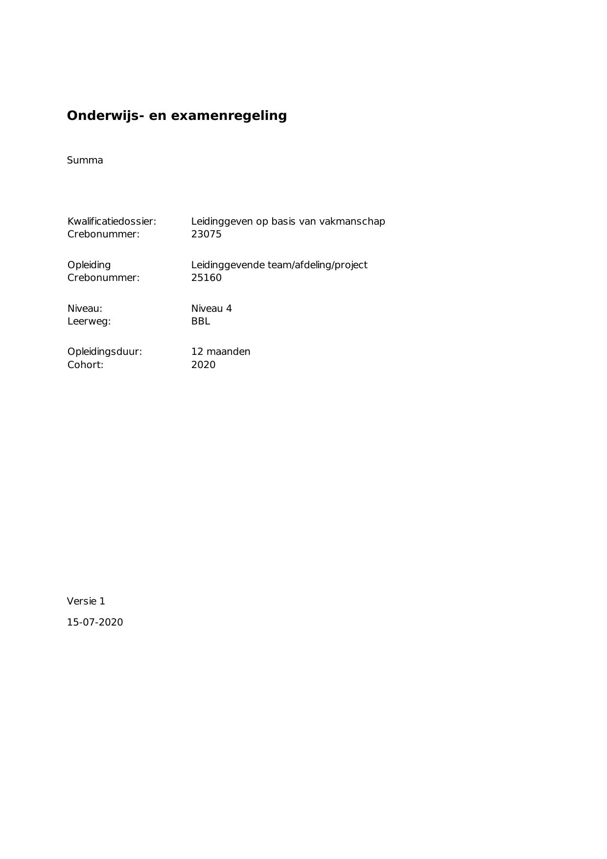 Leidinggevende team/afdeling/project 25160BOL12.01 in cohort 2020-2021