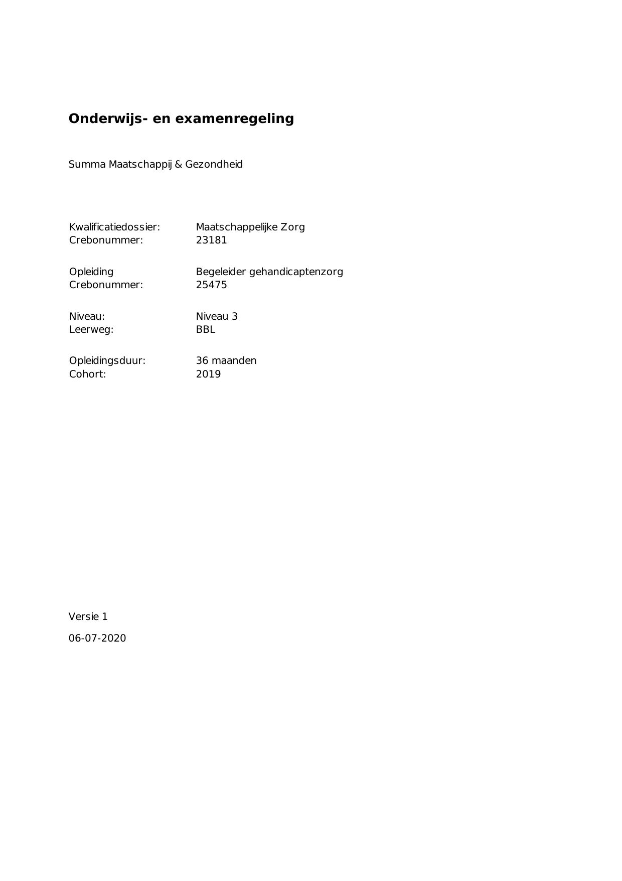Begeleider gehandicaptenzorg 25475BBL36.01 in cohort 2019-2020