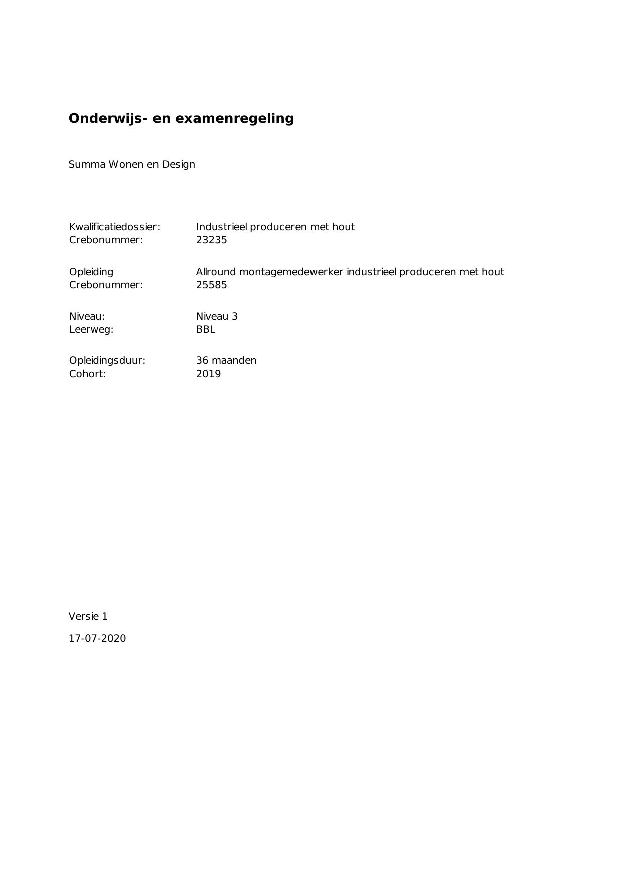 Allround montagemedewerker industrieel produceren met hout 25585BBL36.01 in cohort 2019-2020
