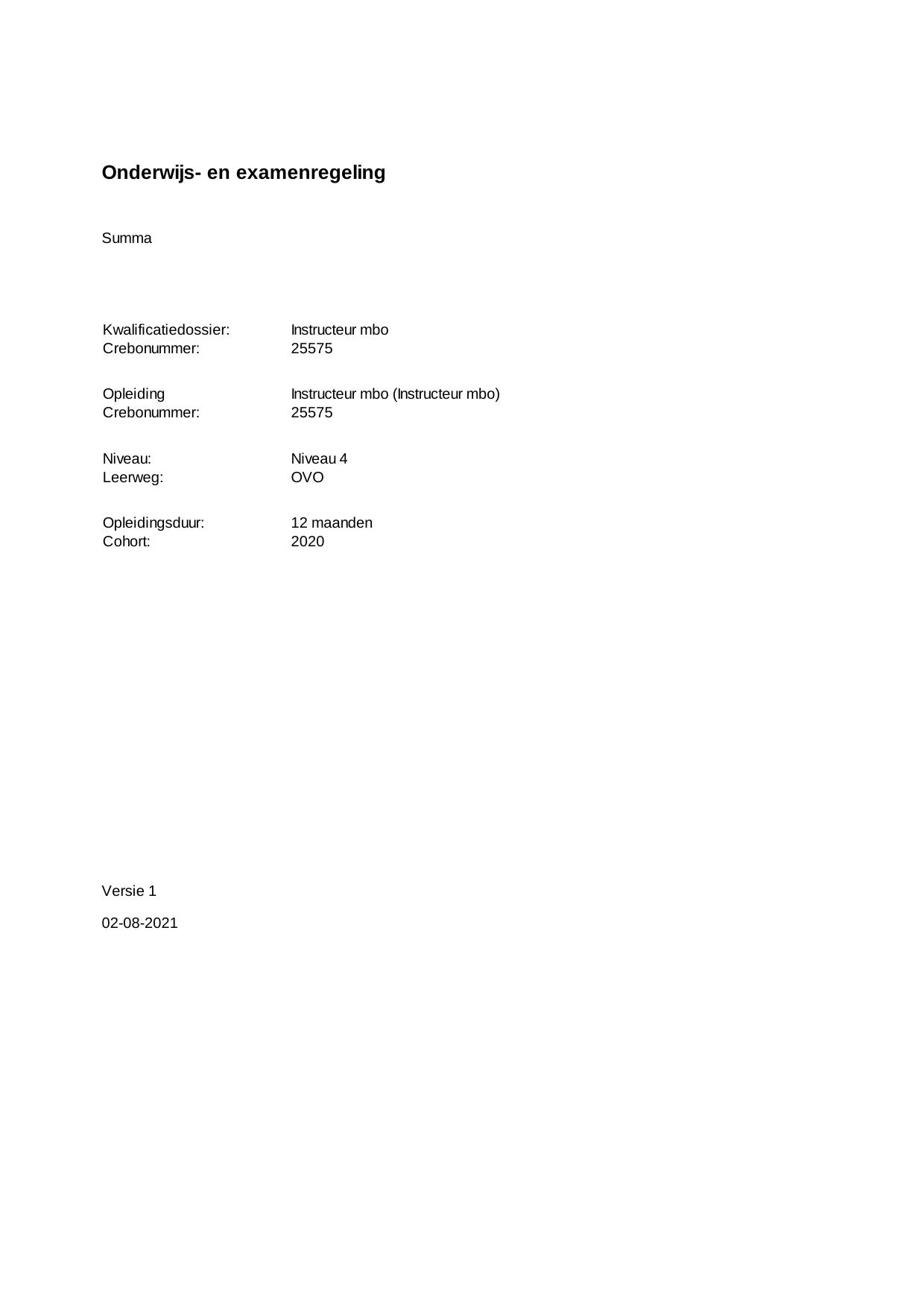Instructeur mbo (Instructeur mbo) 25575OVO12.01 in cohort 2020-2021