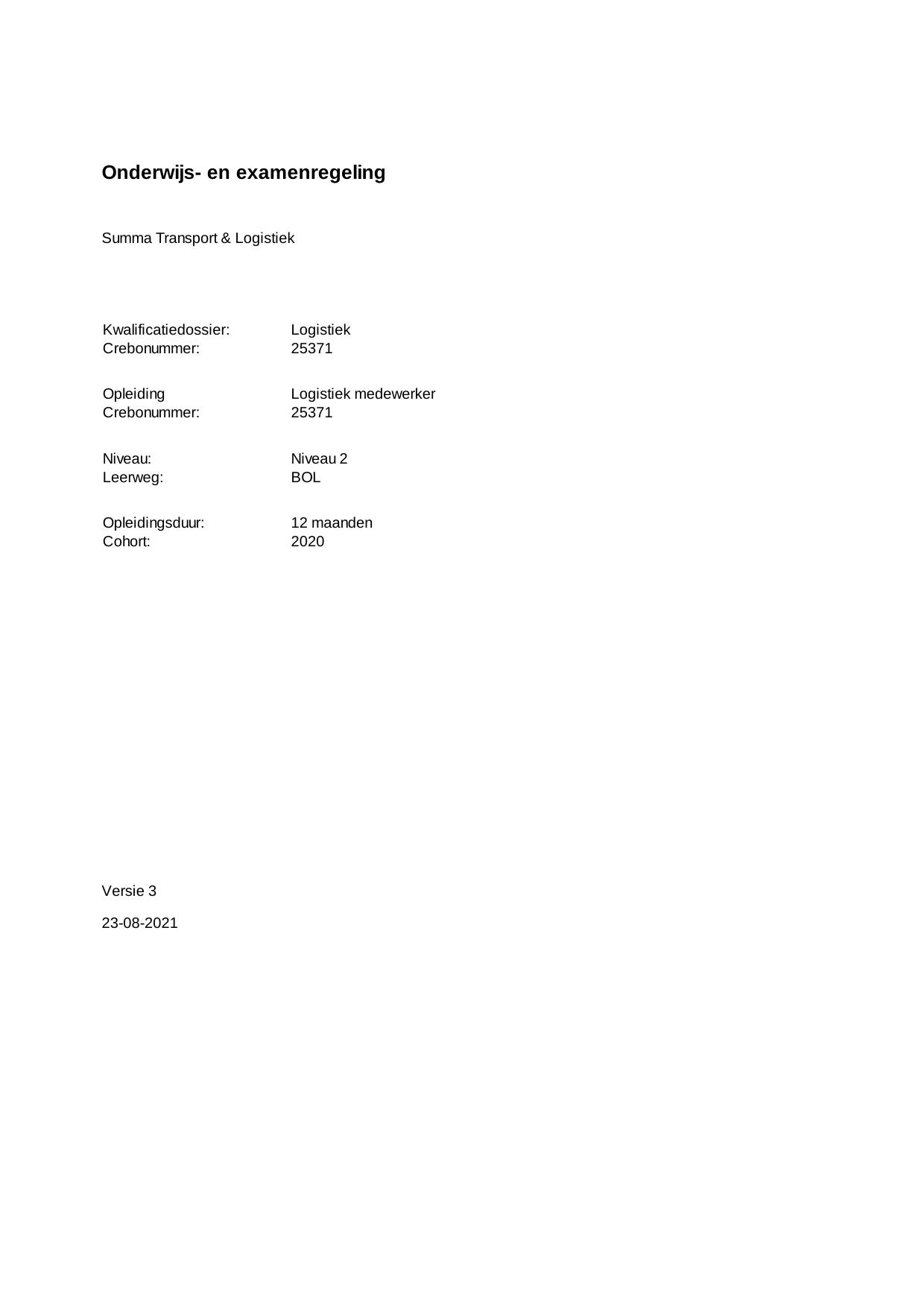 Logistiek medewerker 25371BOL12.02 in cohort 2020-2021