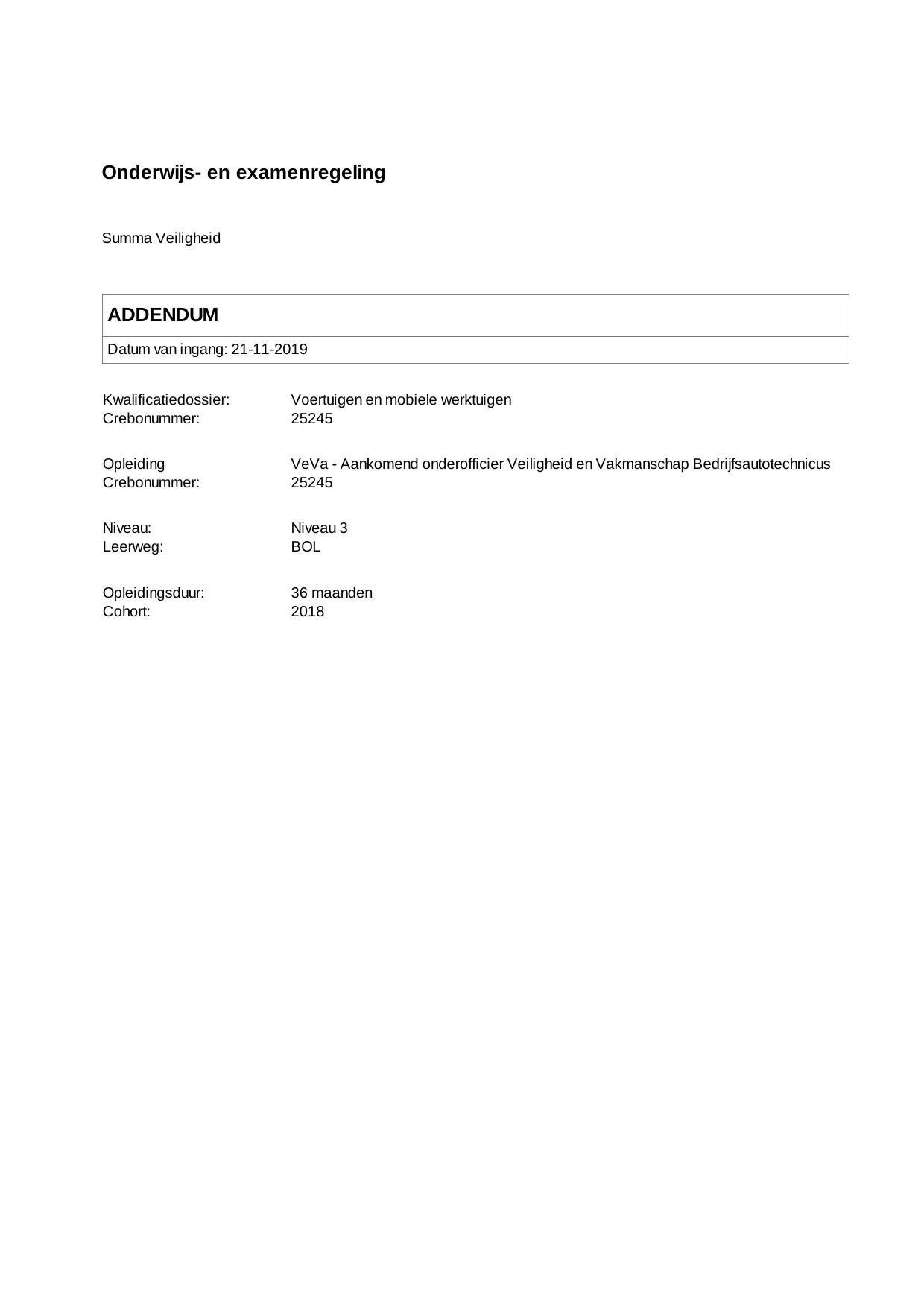 VeVa - Aankomend onderofficier Veiligheid en Vakmanschap Bedrijfsautotechnicus 25245BOL36.02 in cohort 2018-2019