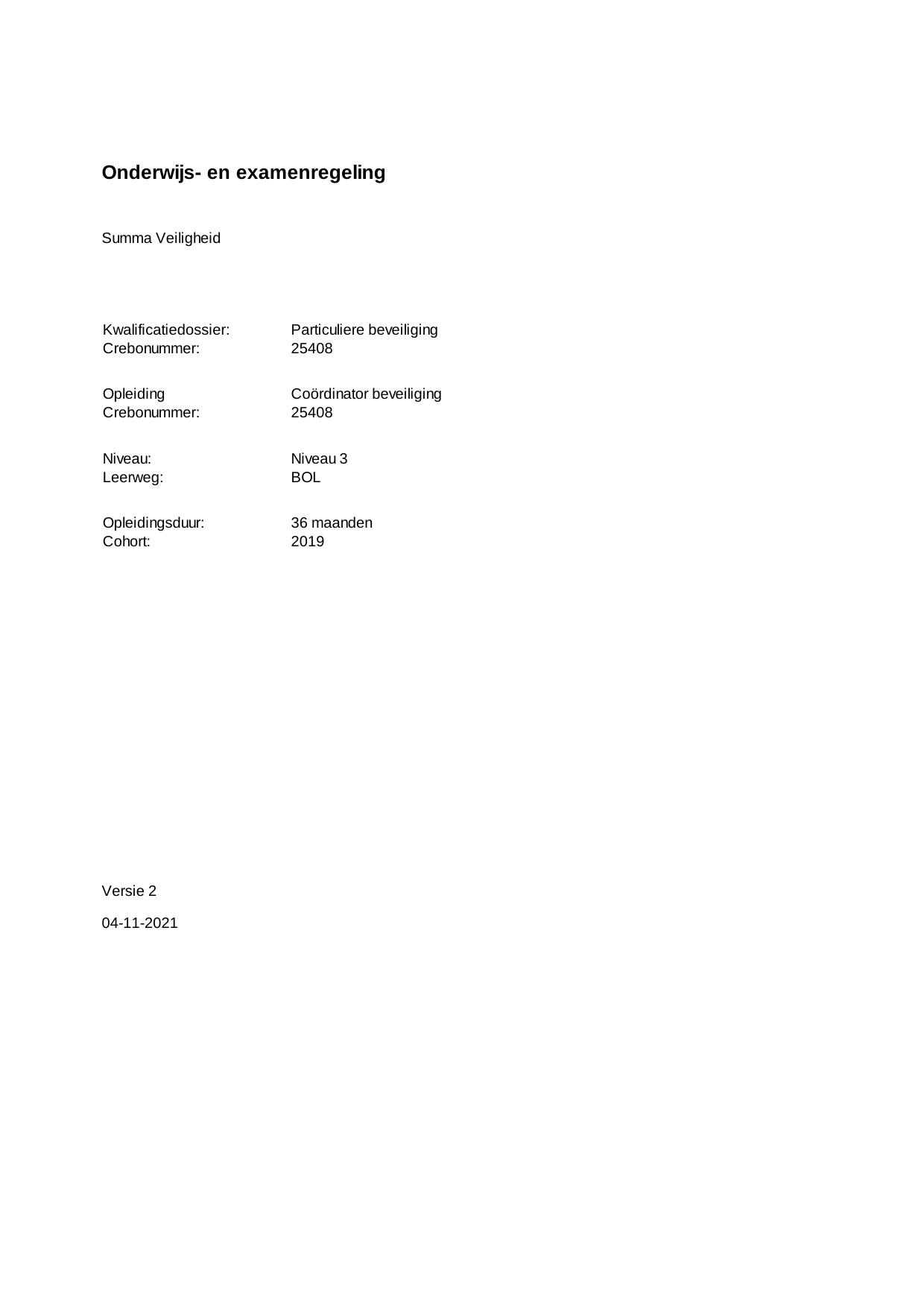Coördinator beveiliging 25408BOL36.01 in cohort 2019-2020