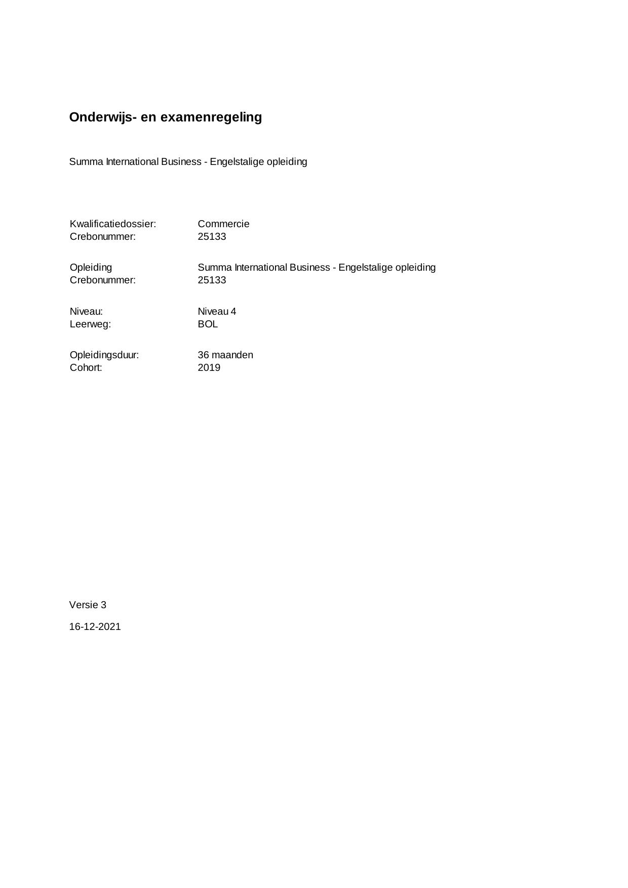 Summa International Business Engelstalig of tweetalig 25133BOL36.02 in cohort 2019-2020