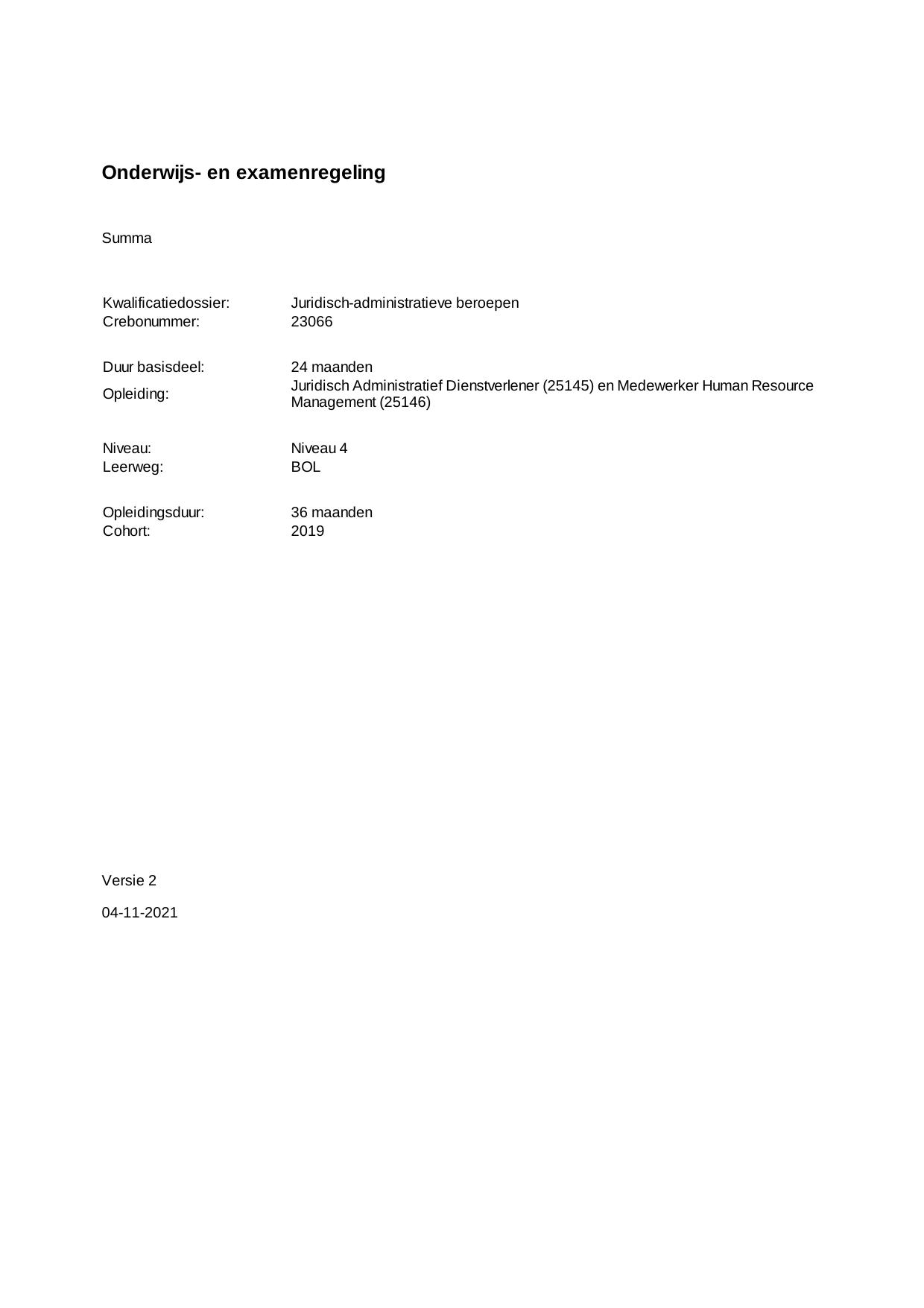 Juridisch-administratieve beroepen 23066BOL36.01 in cohort 2019-2020