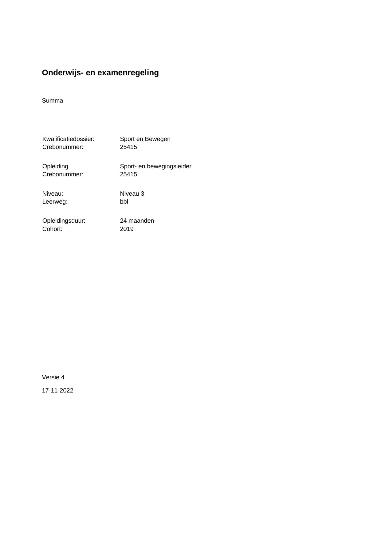 Sport- en bewegingsleider 25415BBL24.01 in cohort 2019-2020