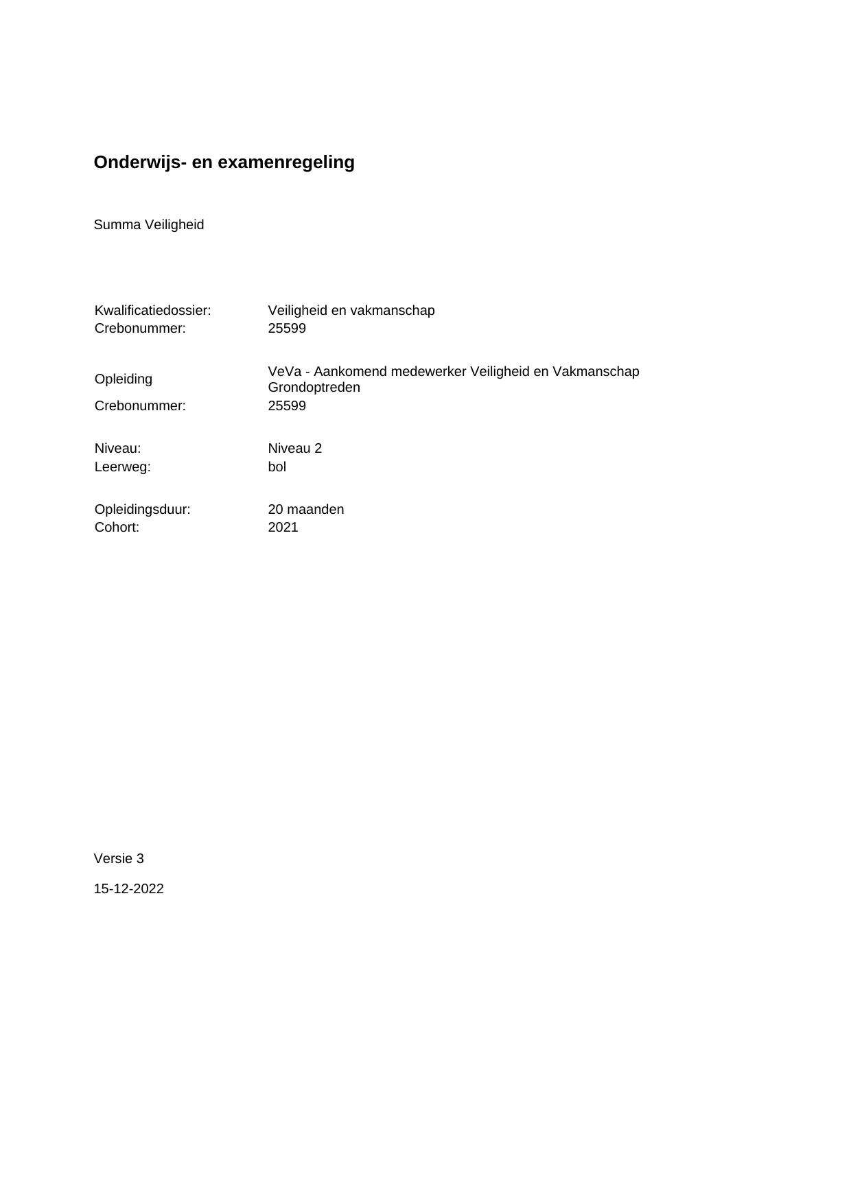 VeVa - Aankomend medewerker Veiligheid en Vakmanschap Grondoptreden 25599BOL20.01 in cohort 2021-2022