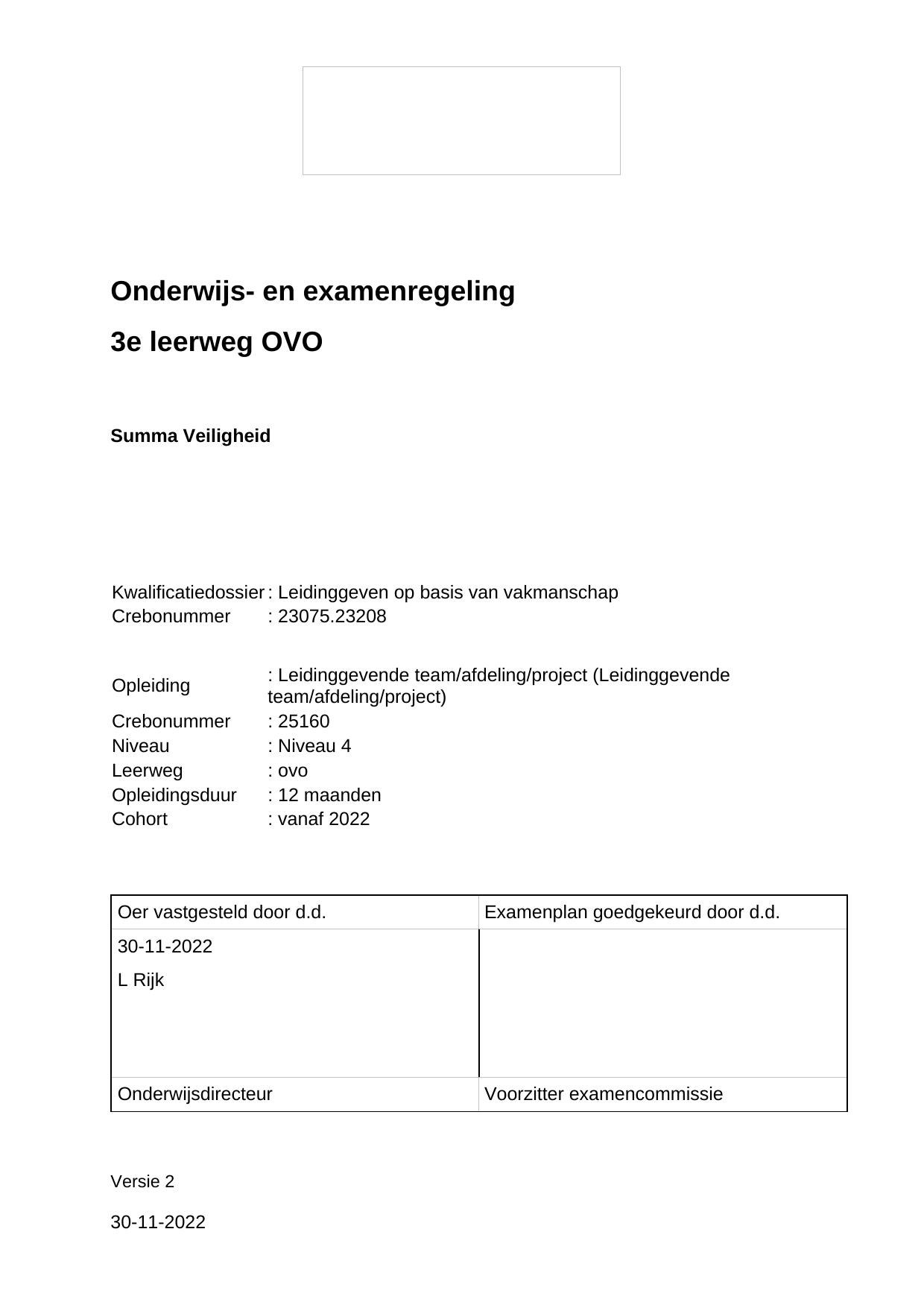 Leidinggevende team/afdeling/project 25160OVO12.02 in cohort 2022-2023