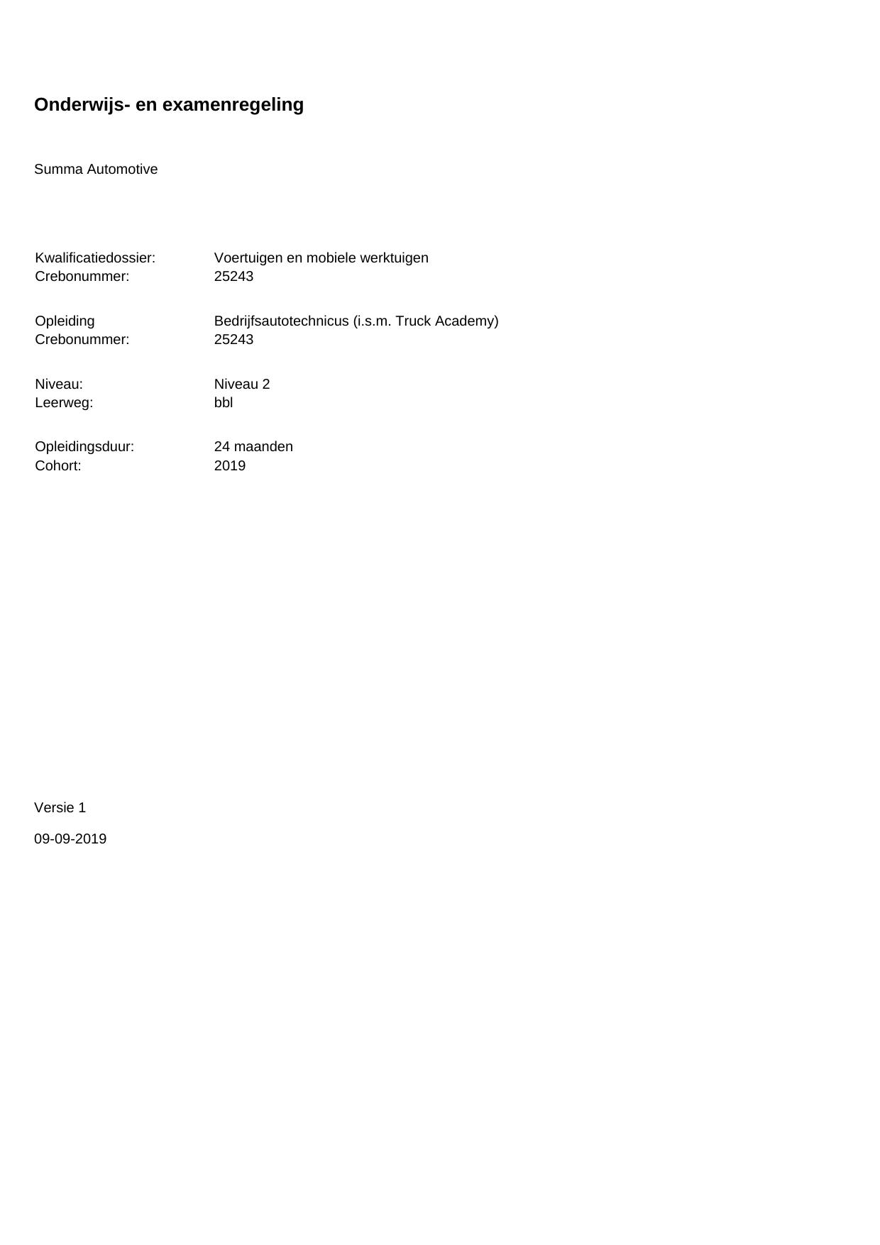 Bedrijfsautotechnicus (i.s.m. Truck Academy) 25243BBL24.01 in cohort 2019-2020