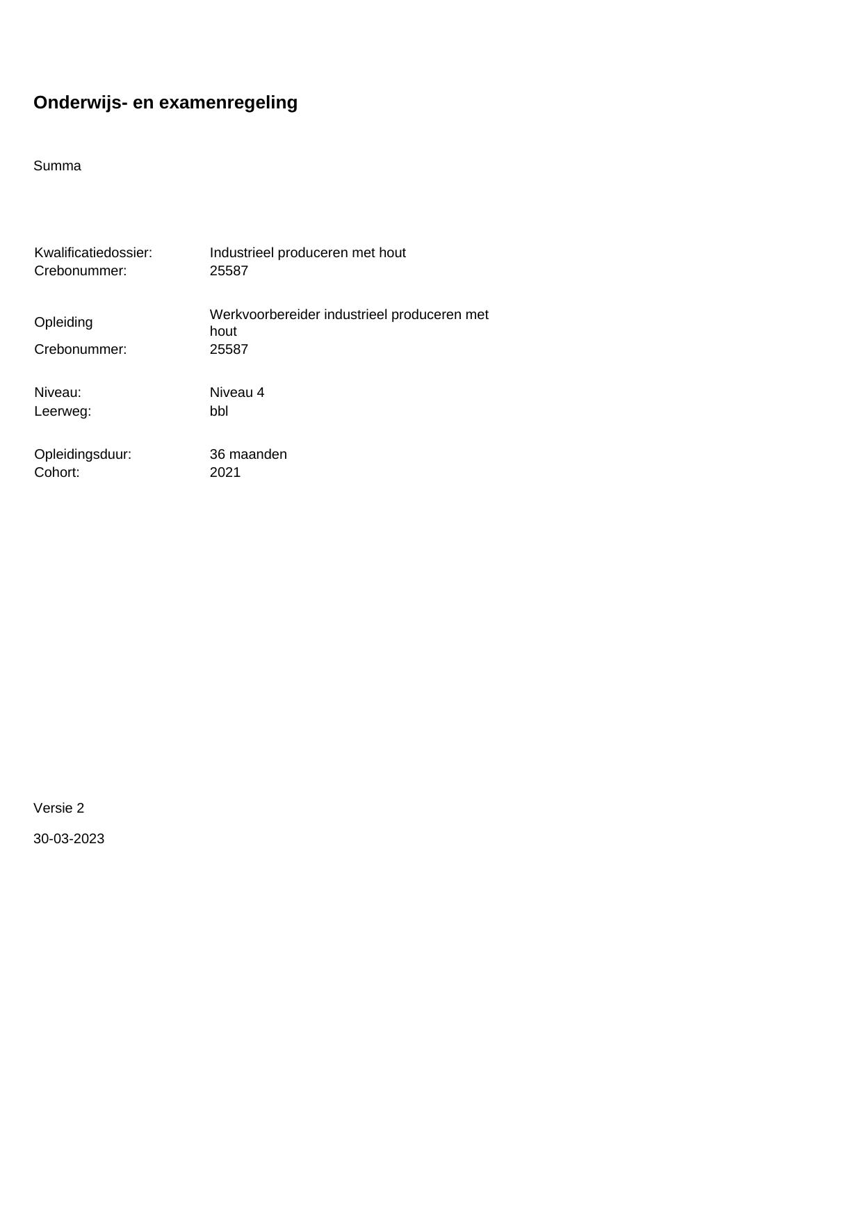Werkvoorbereider industrieel produceren met hout 25587BBL36.01 in cohort 2022-2023