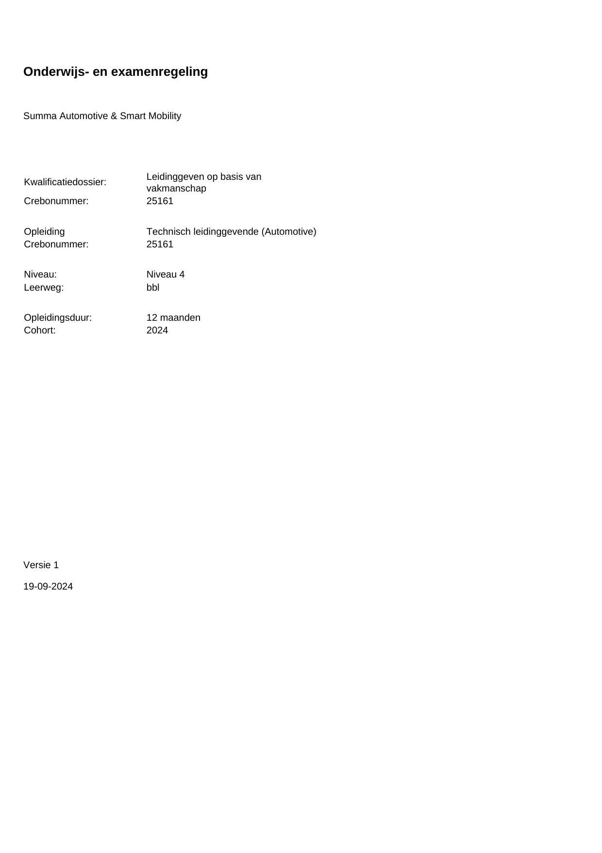 Technisch leidinggevende (Automotive) 25161BBL12.02 in cohort 2024-2025