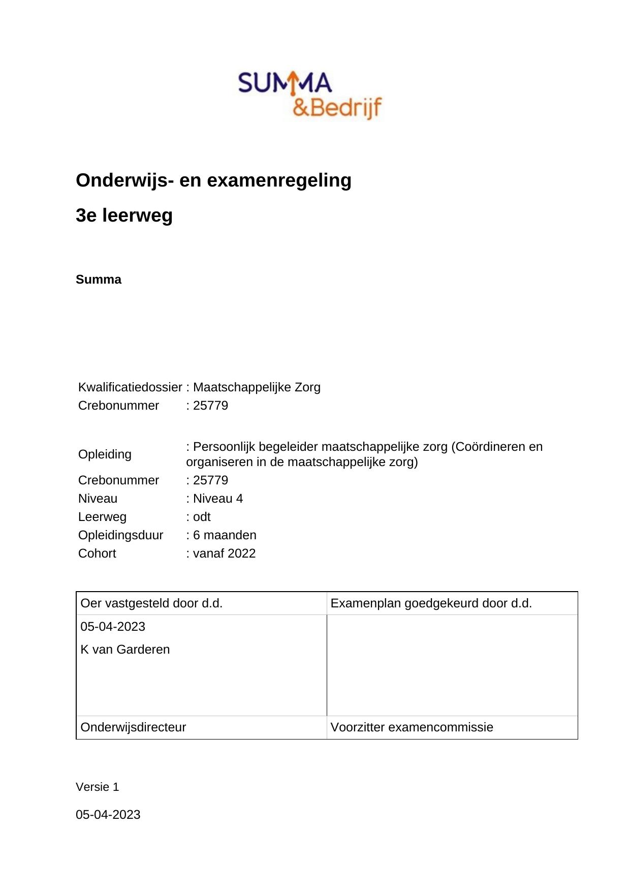 Organiseren en begeleiden in de maatschappelijke zorg 25779ODT06.03 in cohort 2022-2023